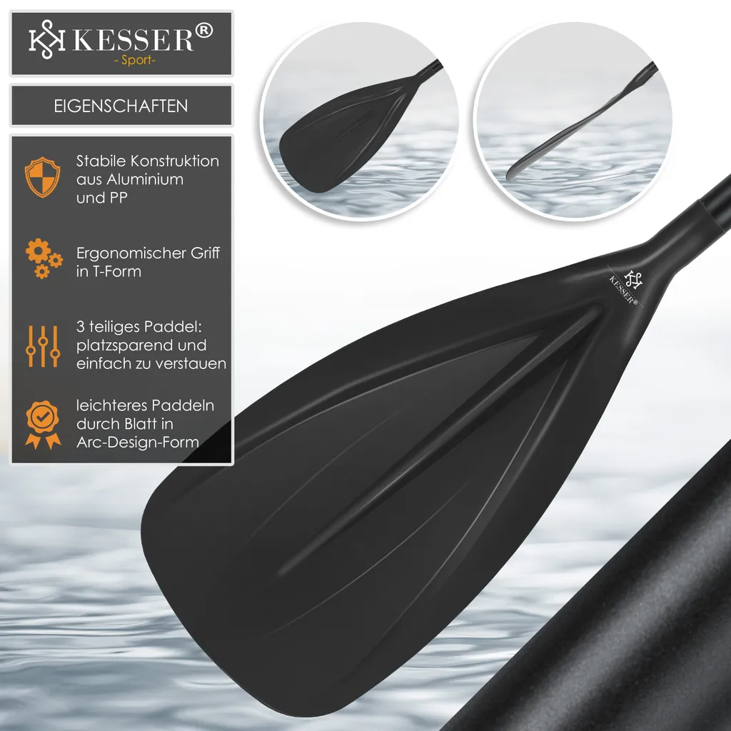 KESSER® Paddle – 3-teilig Für Kayak SUP Stand-Up Paddling Board Stechpaddel, Verstellbar Teleskop 165cm-215cm Aluminum Für Stand Up Paddel Kajakfahren Surfboard Boot Anti-Rutsch Stecksystem, Farbe:Schwarz