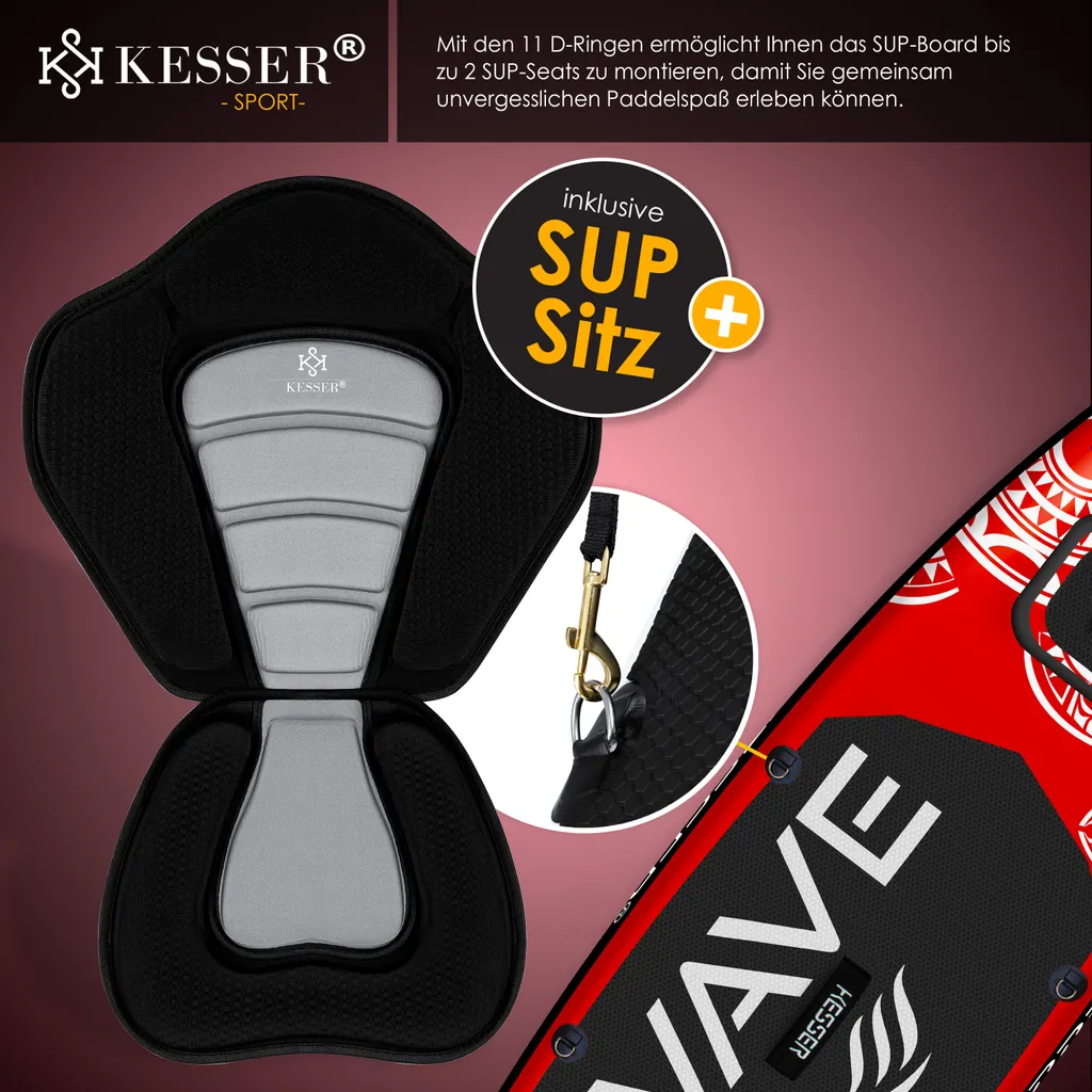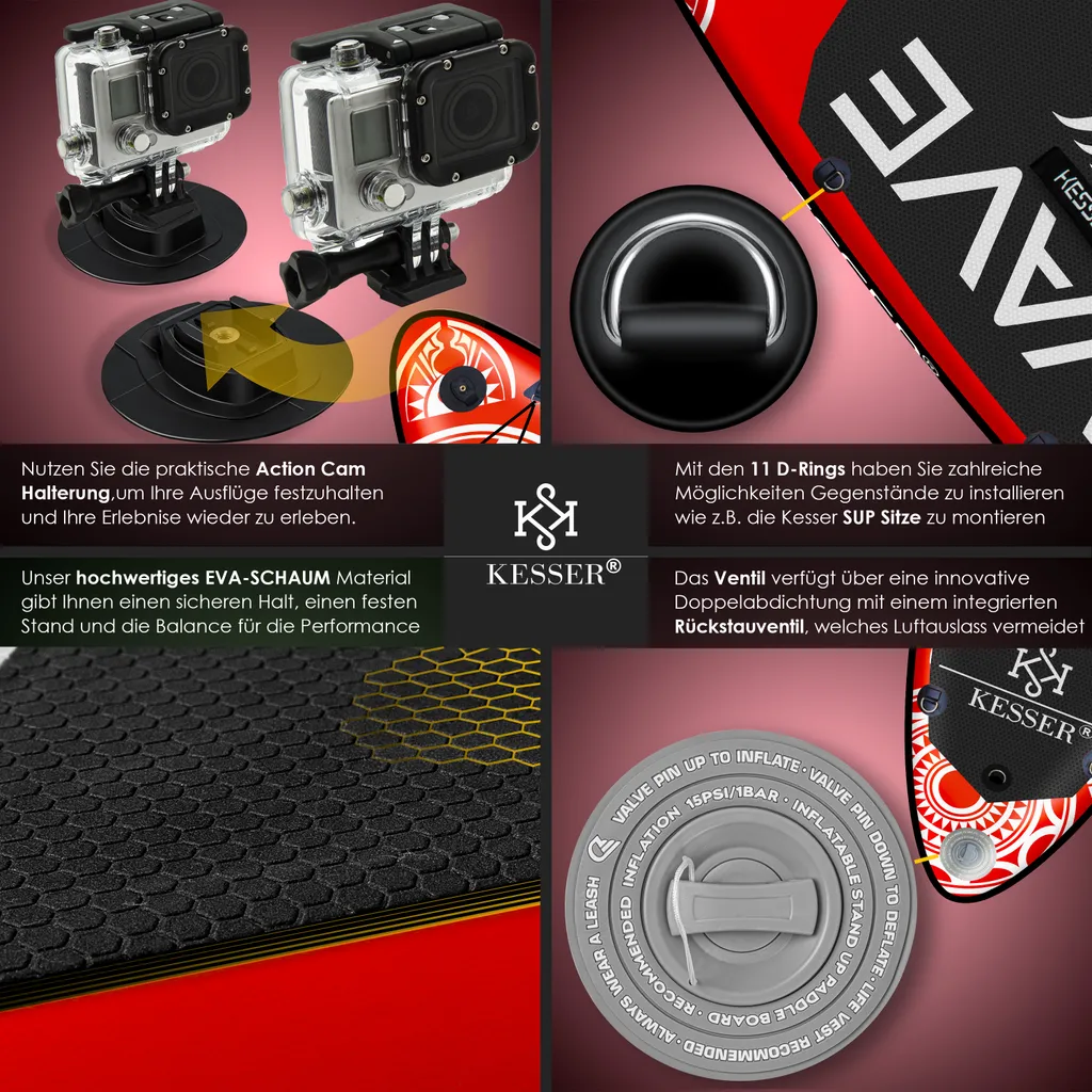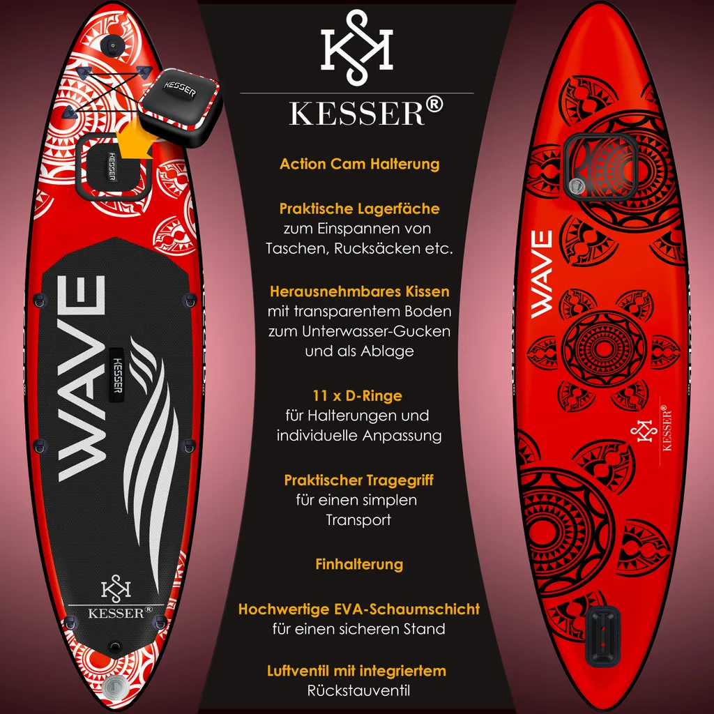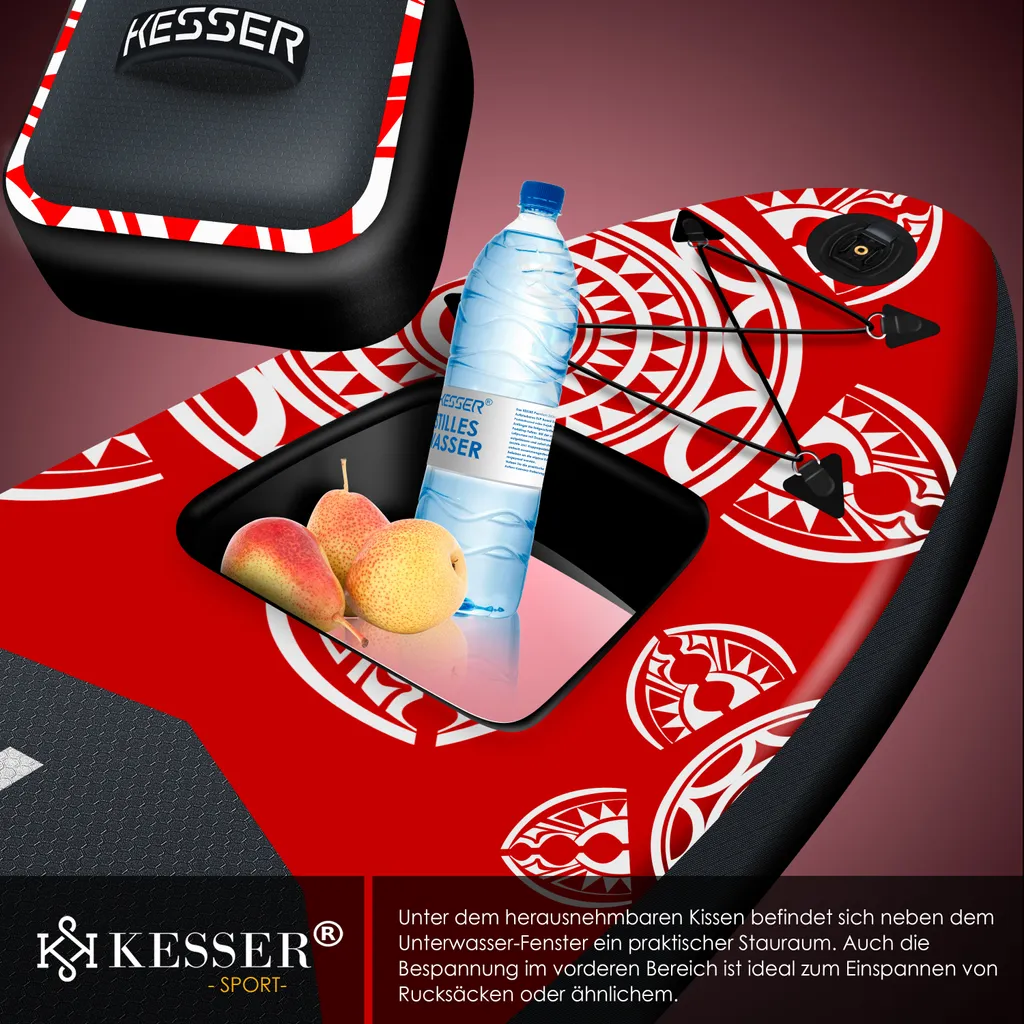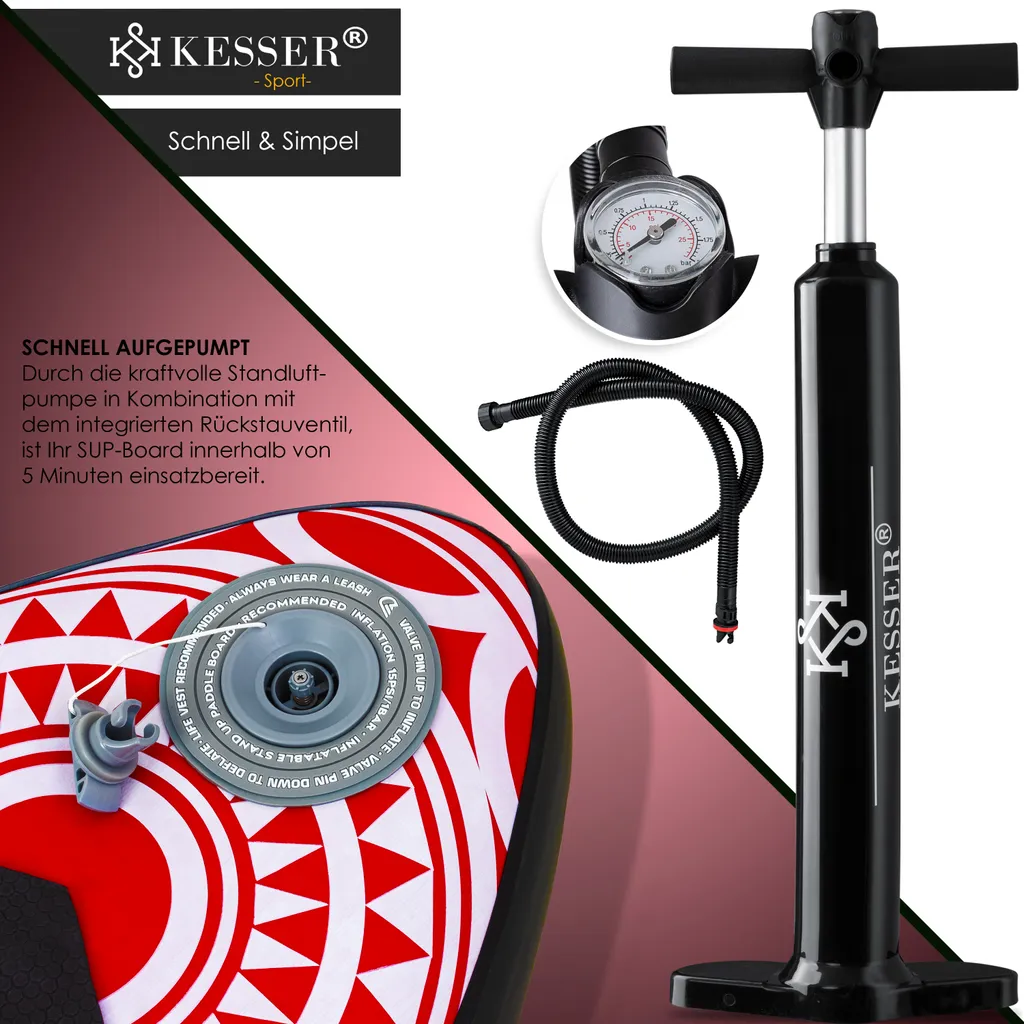 KESSER® SUP Board Aufblasbar Set Mit Sichtfenster Stand Up Paddle Board Premium Surfboard Wassersport | 6 Zoll Dick | Komplettes Zubehör | 130kg , Farbe:(AQUA) Rot 320CM