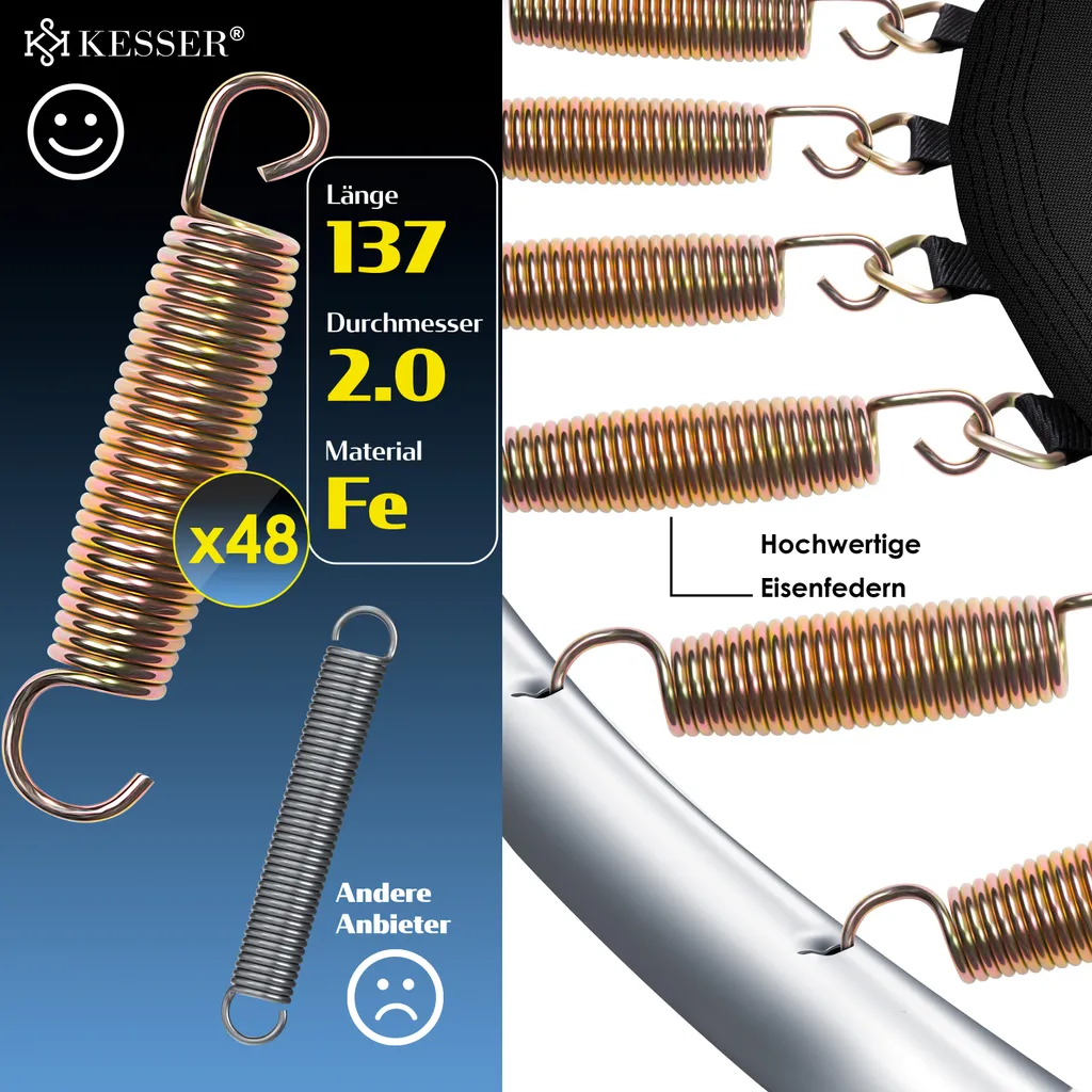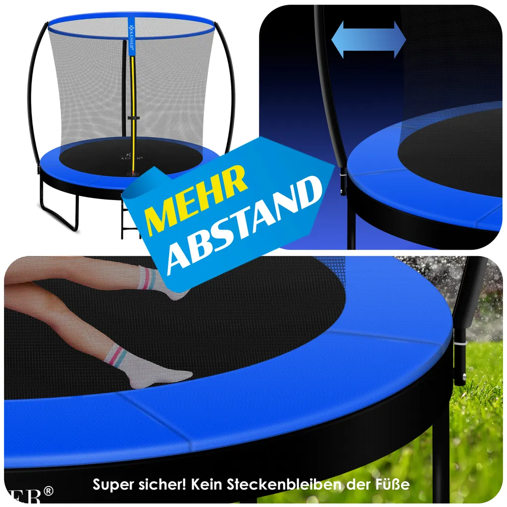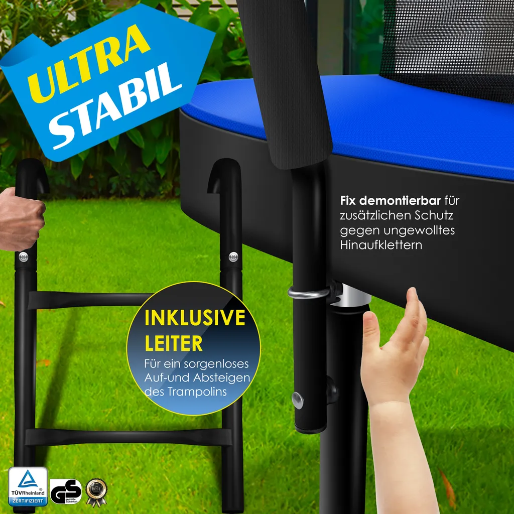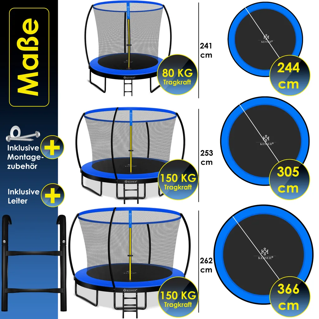 KESSER® Trampolin Gartentrampolin | Rheinland GS | Kindertrampolin Bis 150 Kg | Komplettset Mit Sicherheitsnetz Regenabdeckung, Leiter, Randabdeckung & Zubehör, Farbe:Blau / Schwarz, Größe:244 Cm