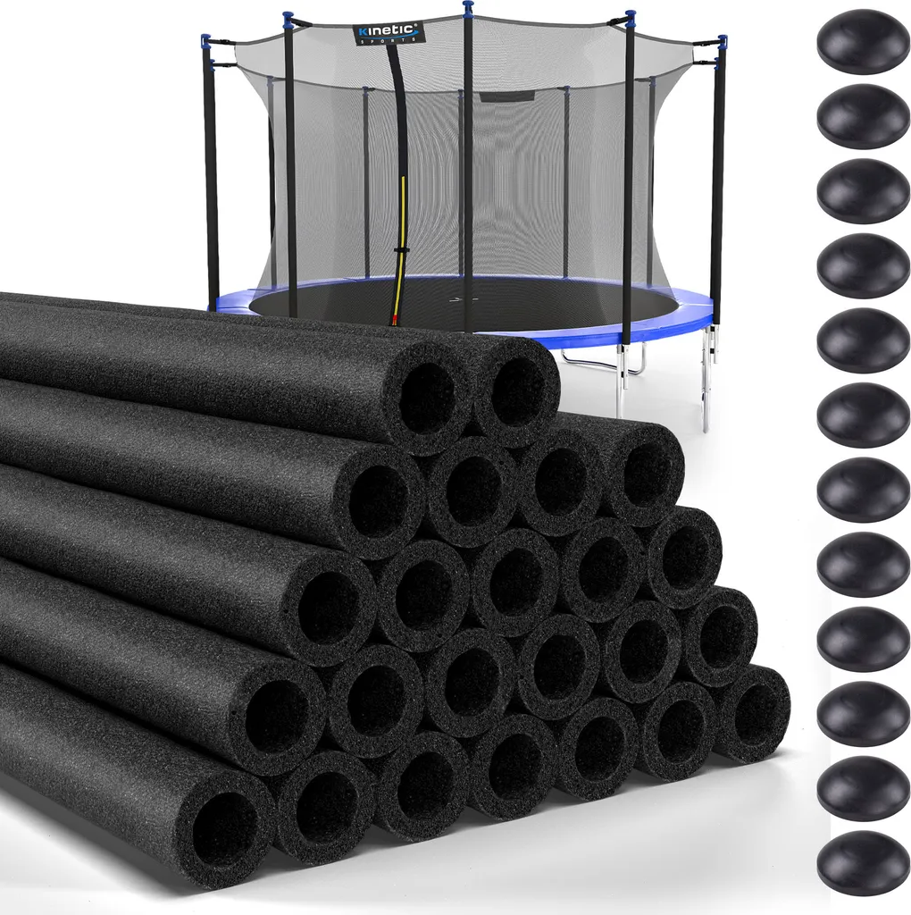 KINETIC SPORTS Stangenschutz 24er Set Für 12 Stangen Inkl. Netzkappen In Grau| Gesamtlänge Ca. 180 Cm | Innendurchmesser Ca. 28 Mm | Netzstangenpolster | Ersatzteil Für Gartentrampoline