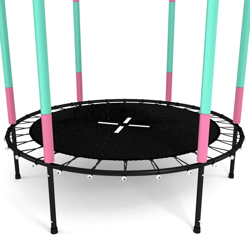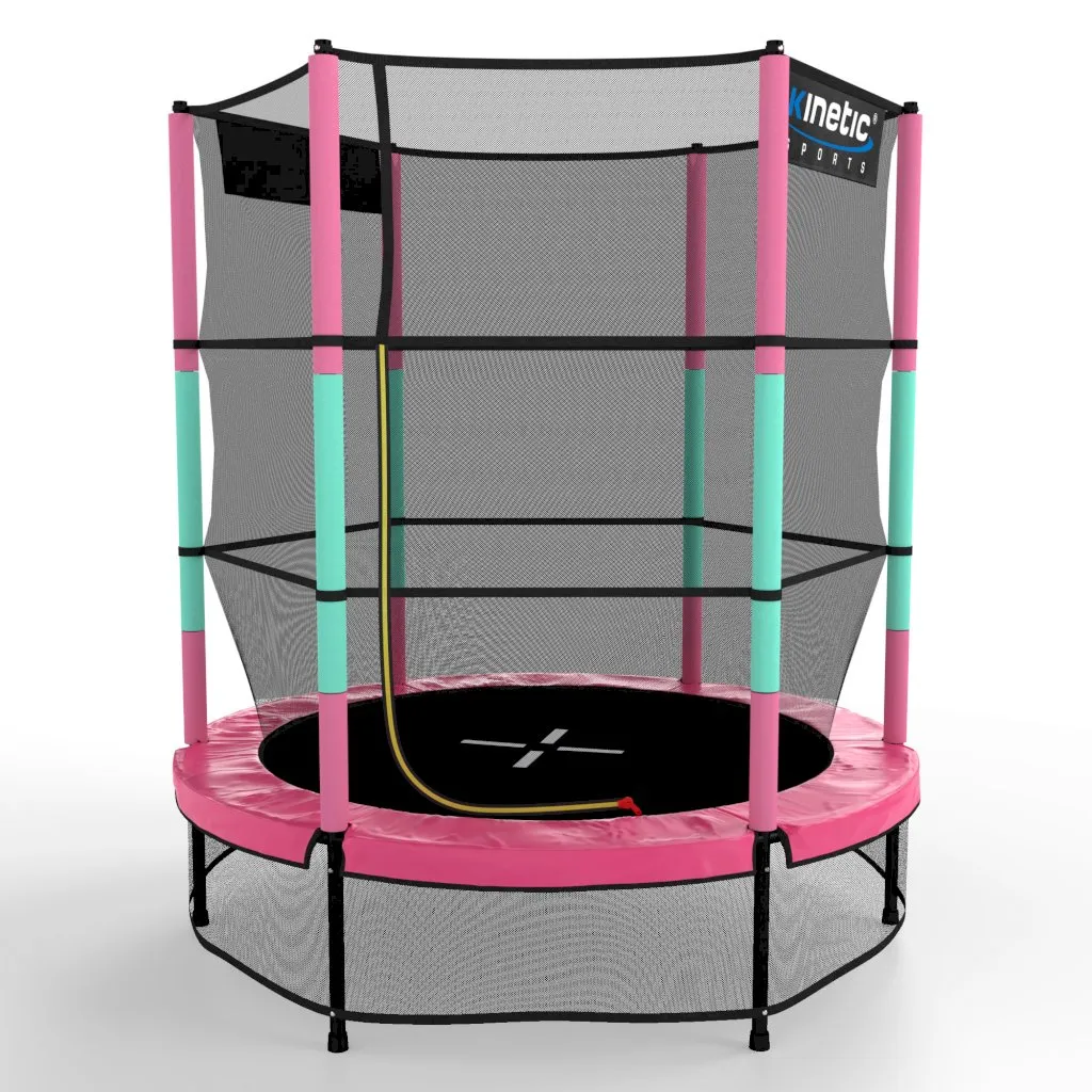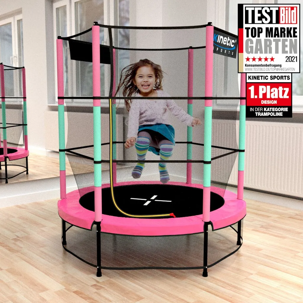 Kinetic Sports Trampolin Kinder Indoortrampolin Jumper 140 Cm Randabdeckung Stangen Gepolstert, Gummiseil-Federung Sicherheitsnetz Pink