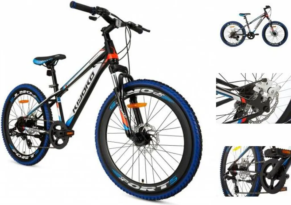 Kiyoko MTB Hardtail Mountainbike 24 Zoll 31,75 Cm Jungen 7G Mechanische Scheibenbremse Schwarz/Weiß