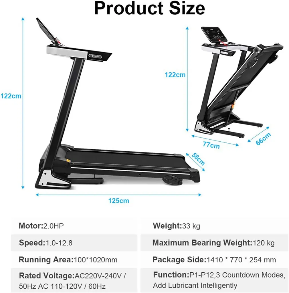 Klappbares Elektrisches Laufband, 2,0-PS-Motor, Automatisches Hinzufügen Von Schmieröl, Soft-Drop-System, Lauffläche 122 X 40 Cm, Ideal Für Zuhause/Büro
