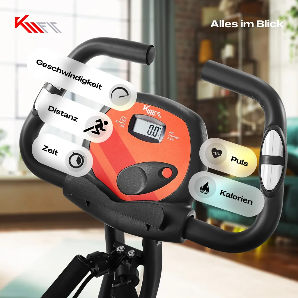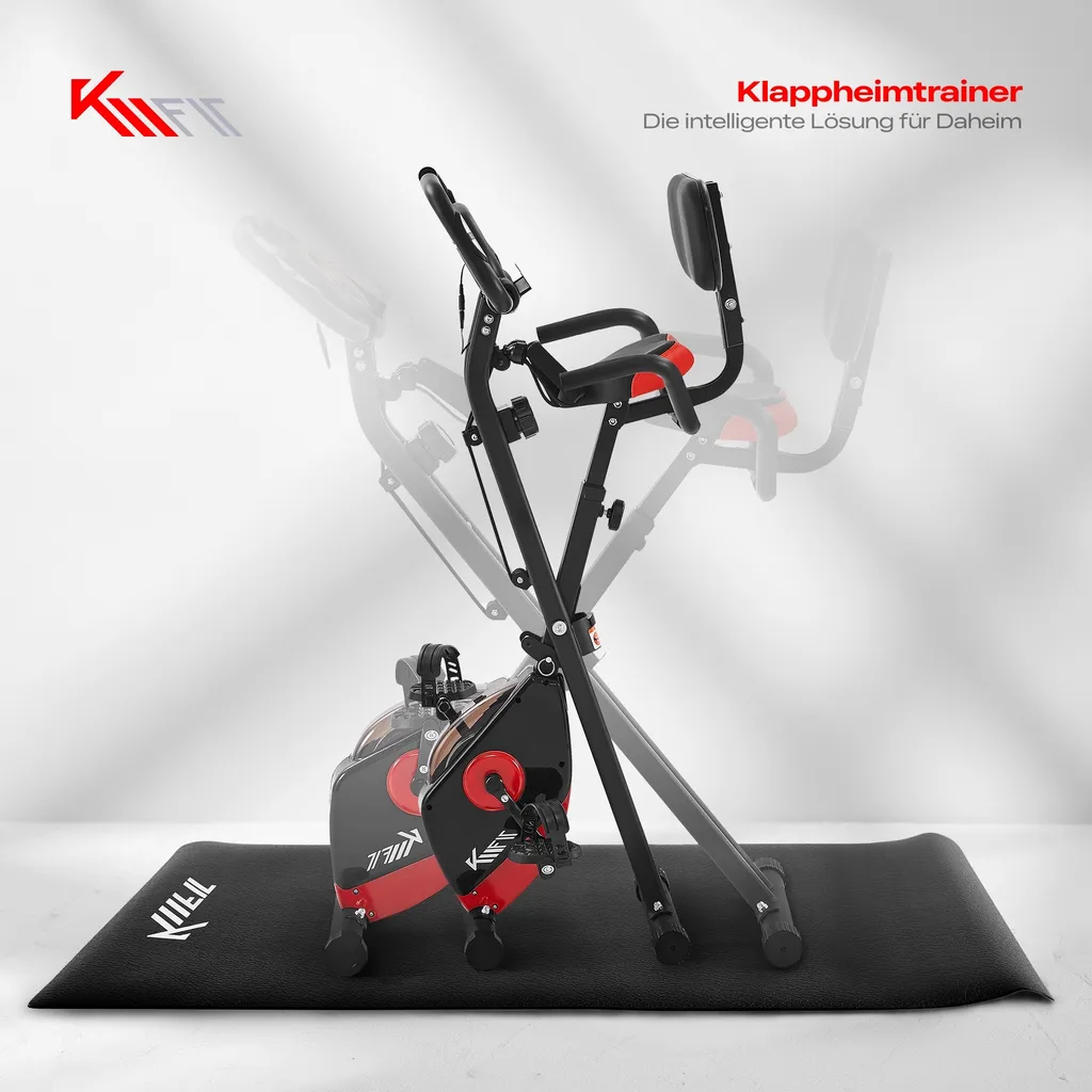 KM-Fit 2in1 Heimtrainer Fahrrad Mit LCD-Display | Fitnessbike Klappbar | Hometrainer 16 Widerstandsstufen | Handpulssensoren | Inkl. Bodenschutzmatte & Handy- Halterung