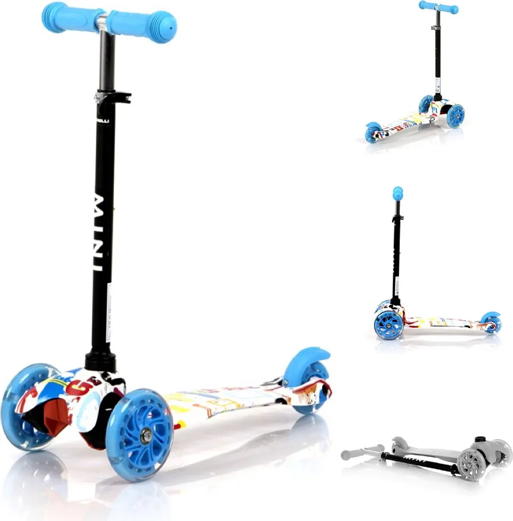 Lorelli Kinderroller Mini Klappbar Verstellbar PolyurethanRäder Leuchten ABEC-7 Bremse Blau