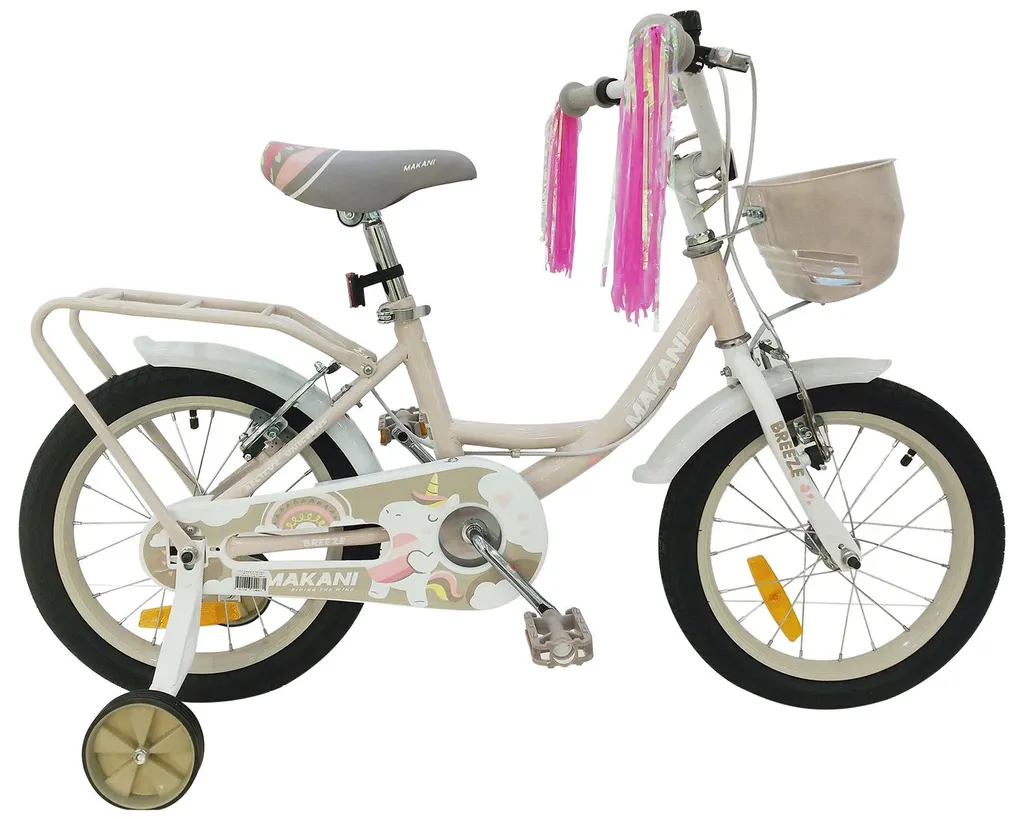 Makani Kinderfahrrad Breeze 16 Zoll Stützräder, Metallrahmen, Korb, Klingel Rosa