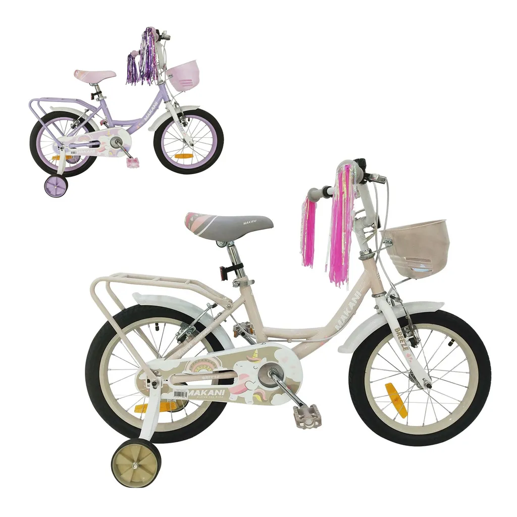 | Zusätzliche Varianten | Makani Kinderfahrrad Aurora 16 Zoll Stützräder, Metallrahmen, Korb, Puppensitz rosa, Makani Kinderfahrrad Breeze 16 Zoll Stützräder, Metallrahmen, Korb, Klingel rosa |