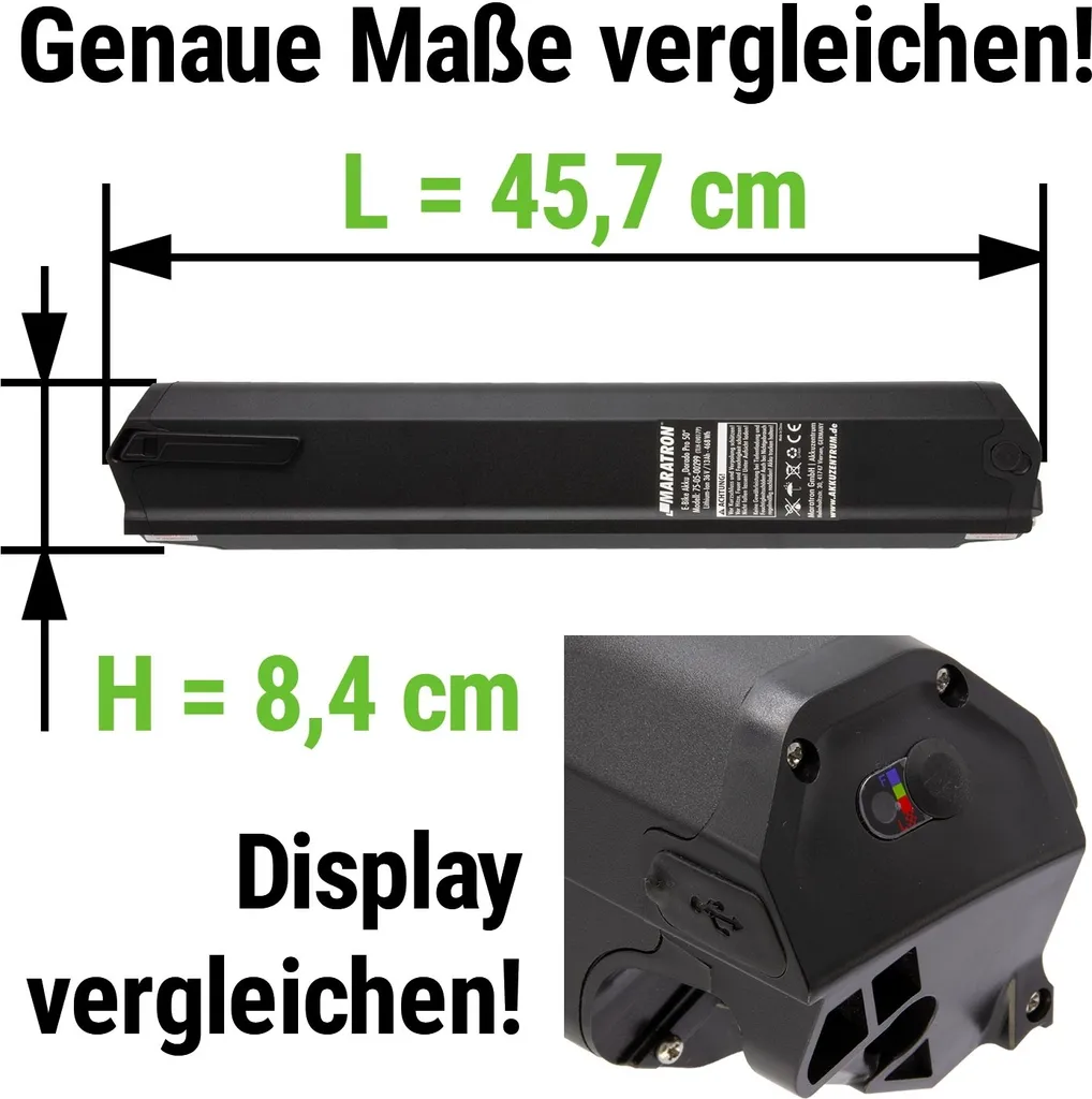 Schreibe die erste Rezension für „Maratron Ersatzakku 36V 13Ah (468Wh) Für Telefunken M920, XC920, CX921, Zündapp Z801, Fitifito FT26 U.v.m.“ Antwort abbrechen