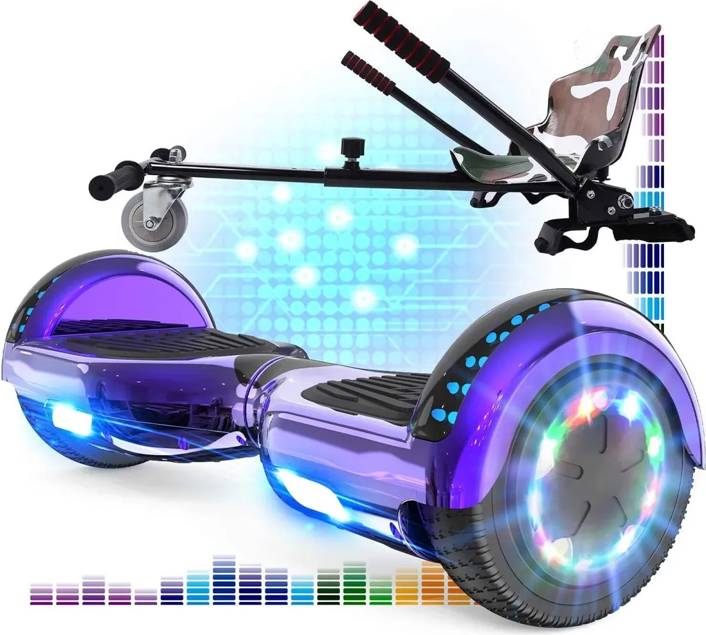 Markboard 6,5 Zoll Hoverboard Mit Bluetooth, LED-Leuchten,350W *2 Motorbeleuchtung Lila + Hoverkart Carbon Schwarz, Self Balance Elektroscooter + Gokart ,Elektroroller Mit Hoversitz, Balance Board + Go-Kart