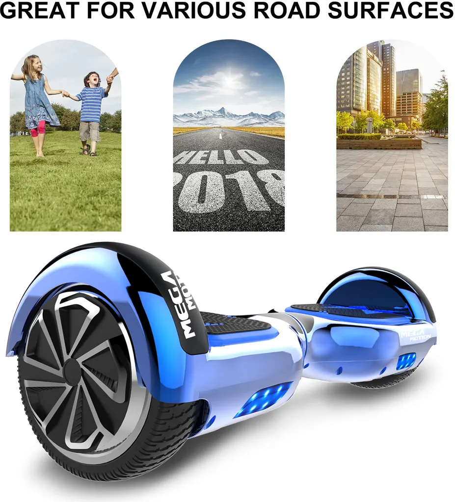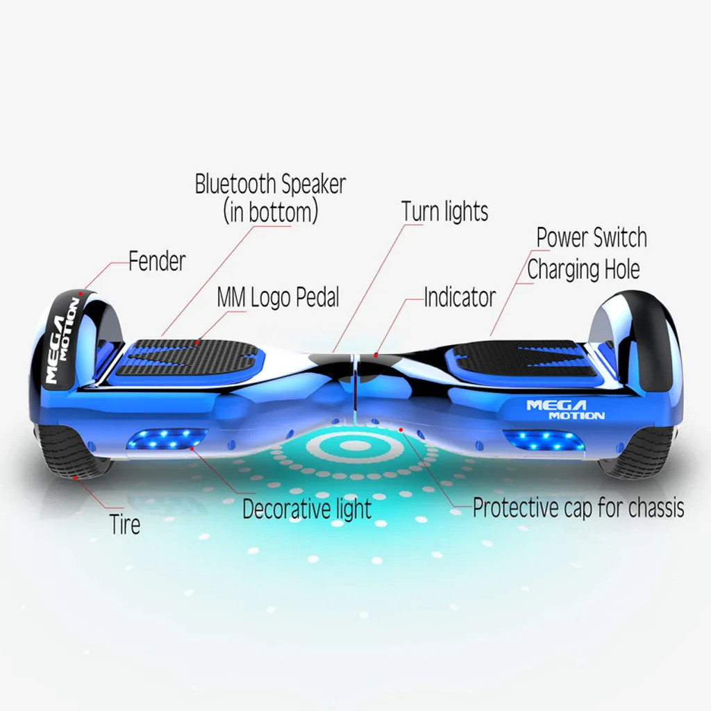 MARKBOARD Hoverboard,Elektro Scooter 6,5 LED E-Balance Scooter Mit Motorbeleuchtung E-Skateboard Elektroroller Bluetooth LED Chrome Blau