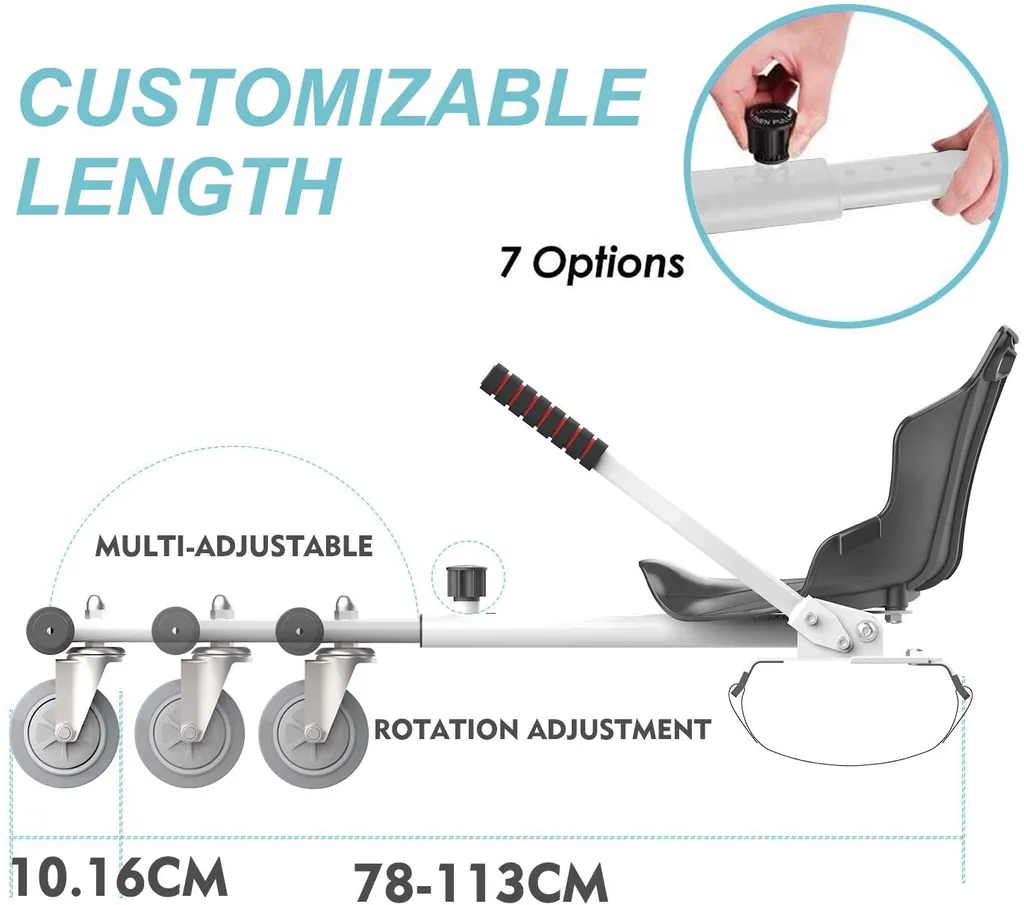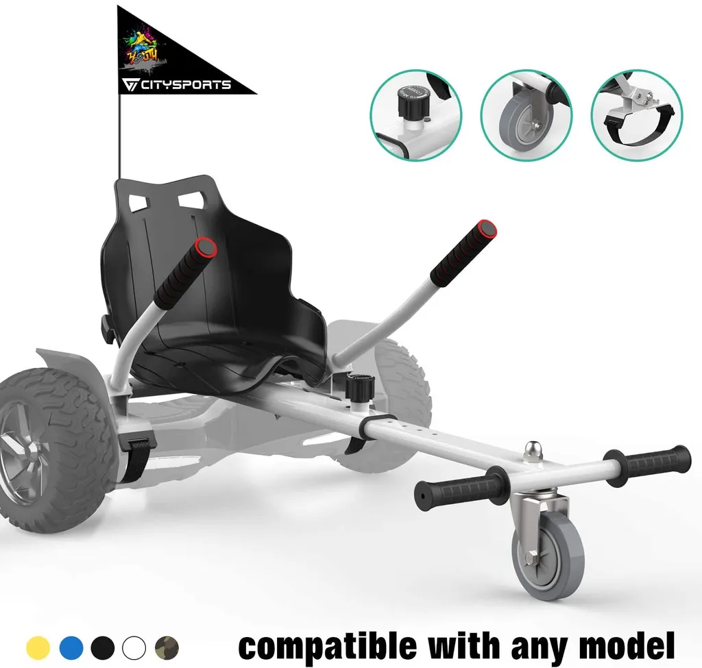 Markboard Hoverkart Kompatibel Mit 6,5, 8.5 Zoll Und 10 Zoll Scooter Weiss, Go-Kart Sitzscooter Sitz Für Hoverboard Sitz Für Elektroscooter Self Balancing Scooter