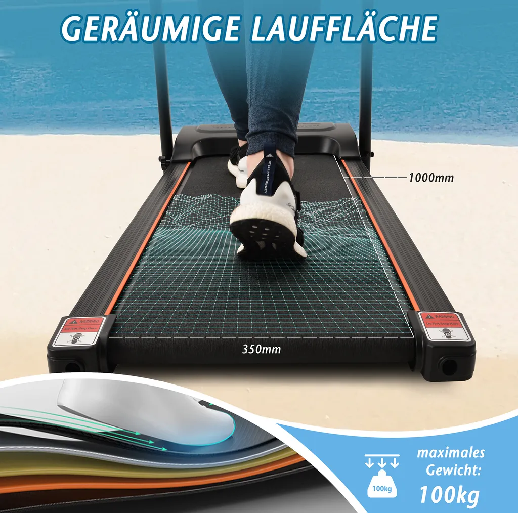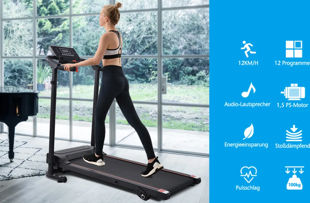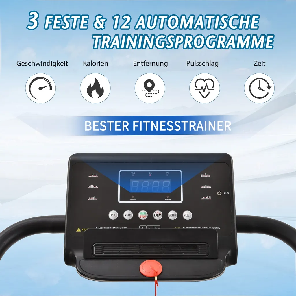 Merax Laufband Klappbar Elektrisch Laufbänder 1,5 PS Leiser Elektromotor 12 Km/h Mit LED Display, 12 Programme Und Pad-/Handyhalter, Max. Benutzergewicht 100kg, Schwarz