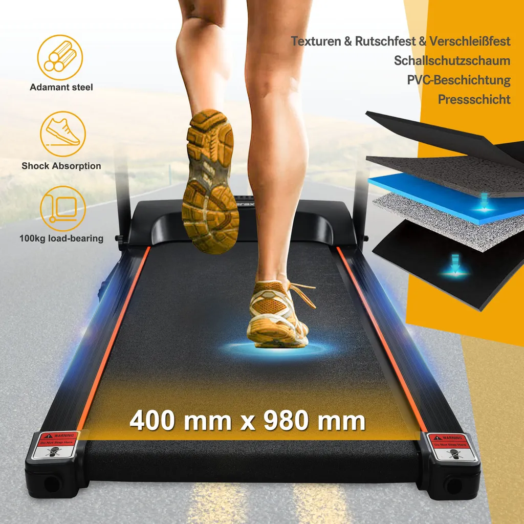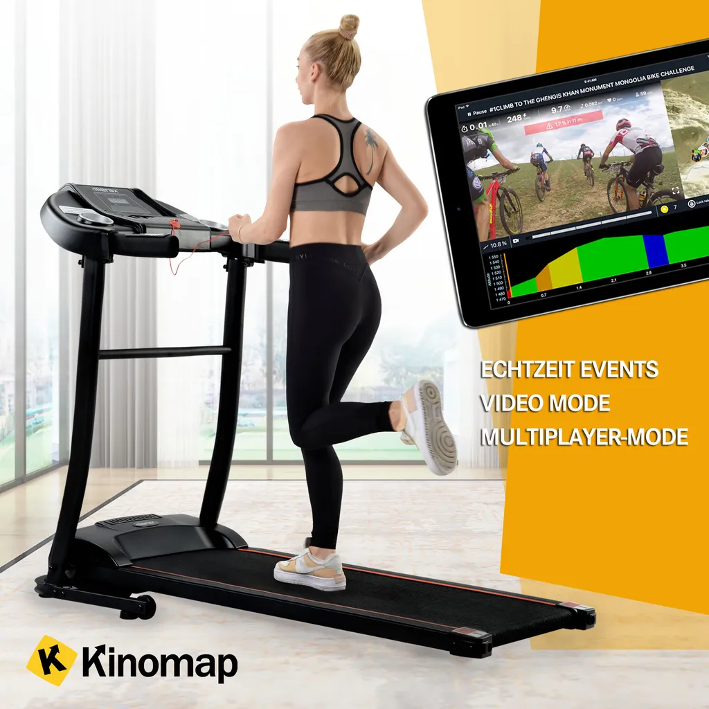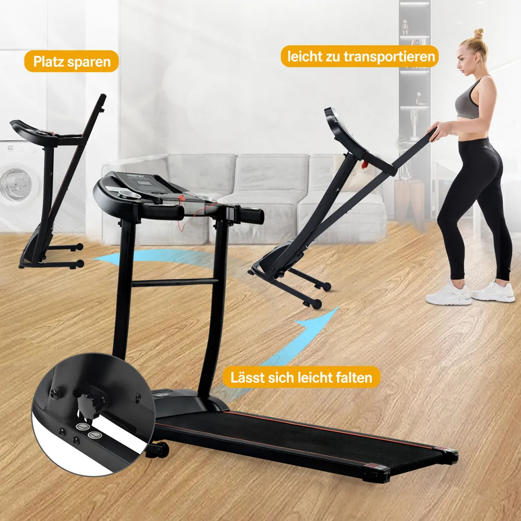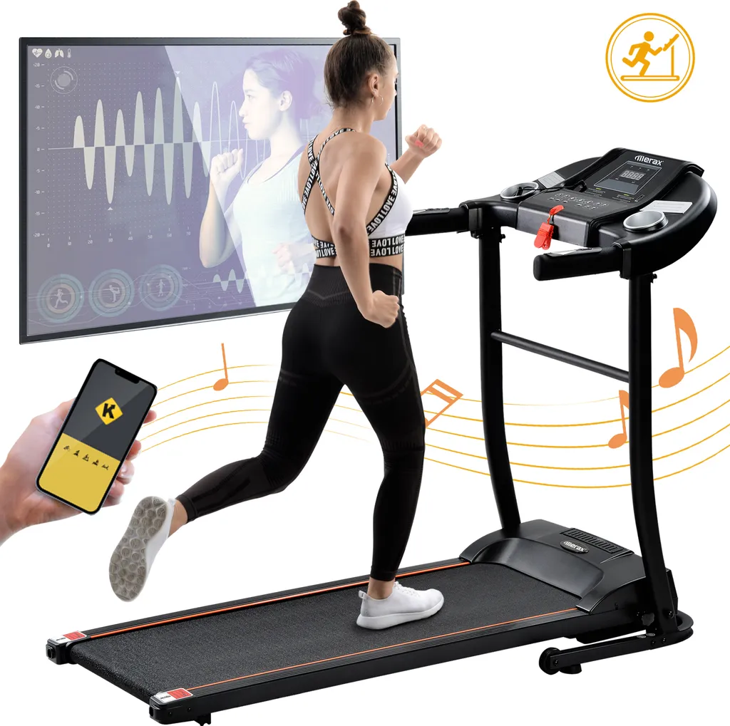 Merax Laufband Klappbar Elektrisch Laufbänder 1,5 PS Leiser Elektromotor Bis 12 Km/h, Trainingsgeräte Mit LED Display+Kinomap+Bluetooth, Voreingestellten Geschwindigkeitsstufen, Max. Benutzergewicht 100kg