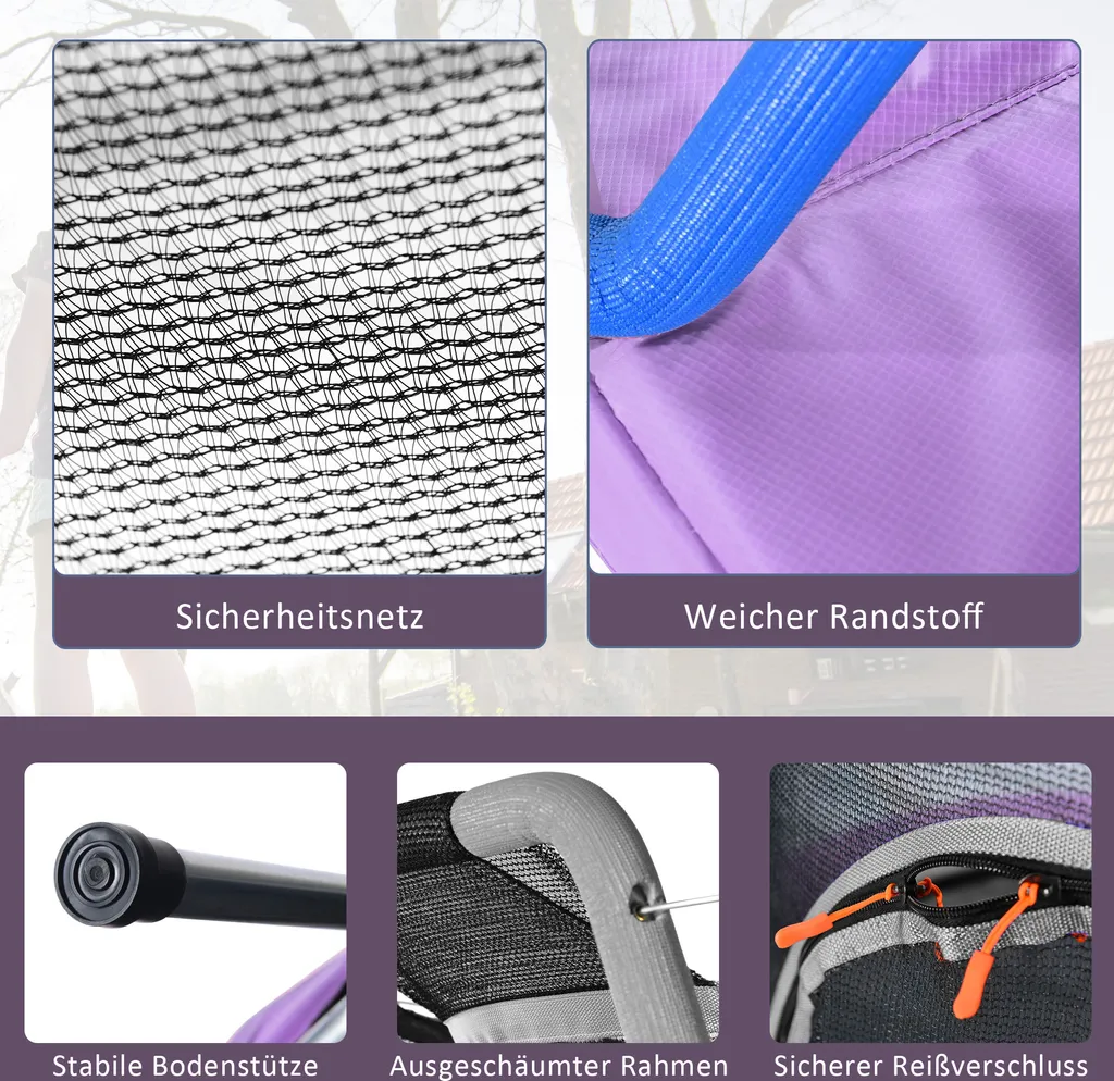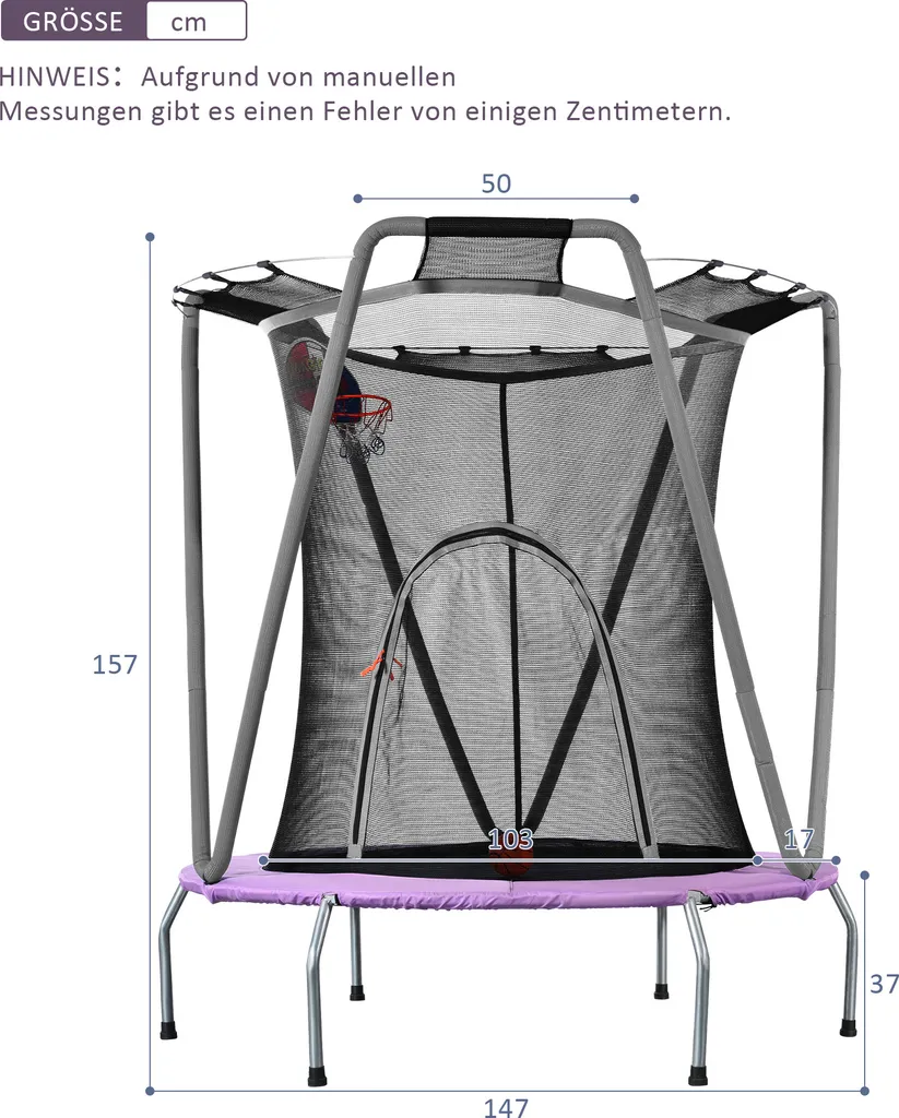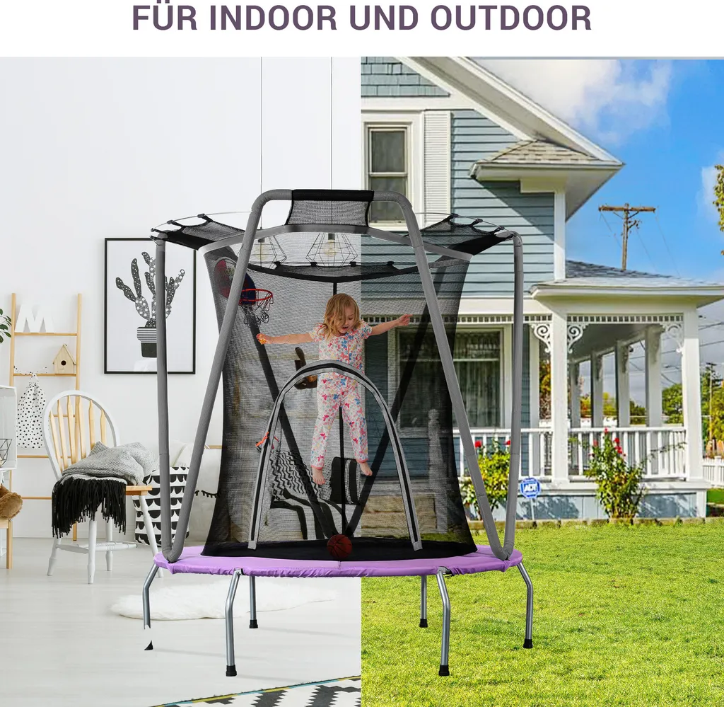 Merax Mini Trampolin φ147cm Kindertrampolin Mit Sicherheitbnetz Und Basketballfunktion, Indoor- Und Outdoortrampolin Für Kinder, Fitness Trampolin Bis 50kg Belastbar, Lila/Grau