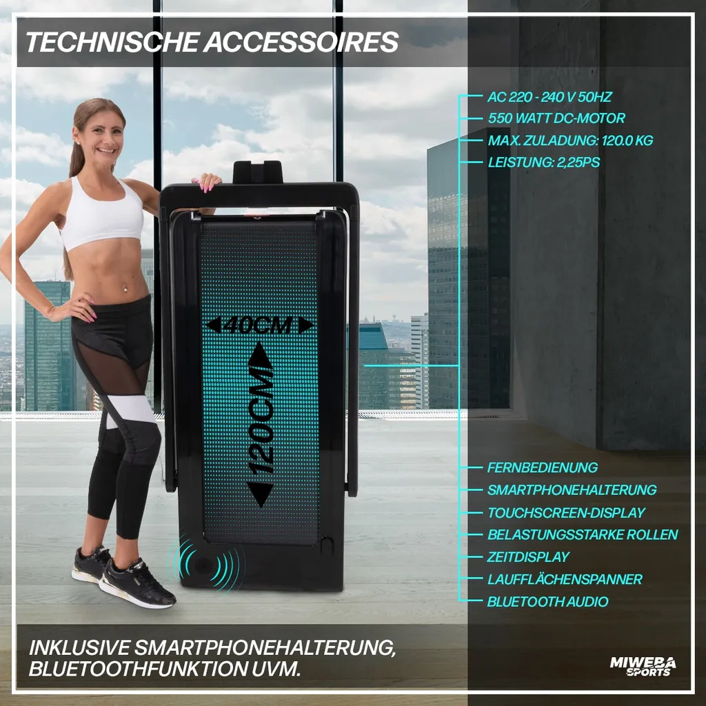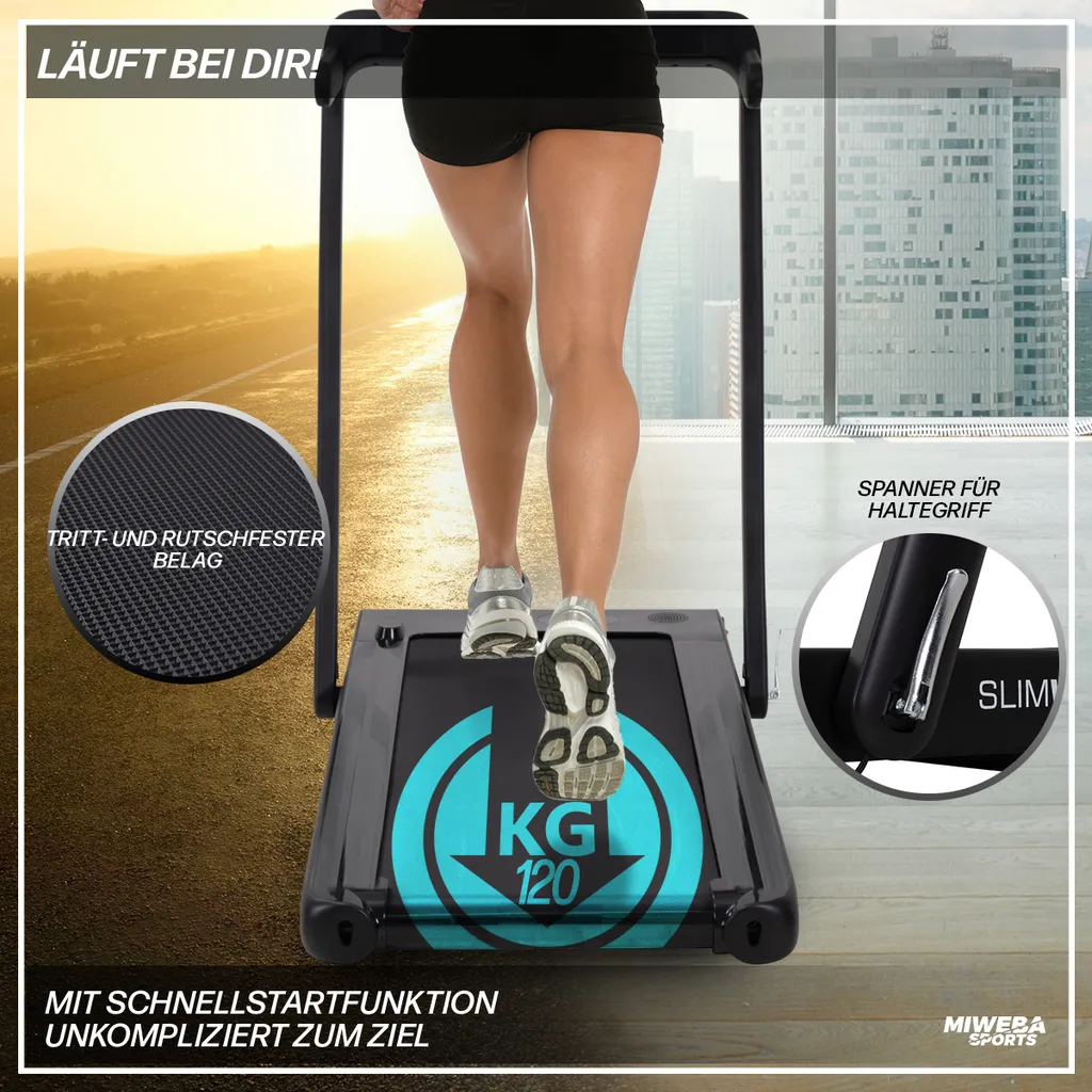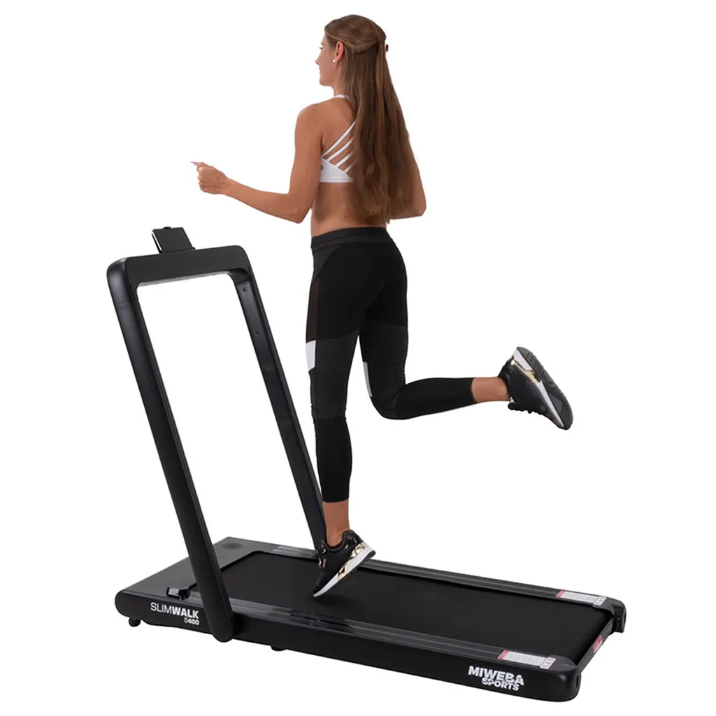 Miweba Sports Laufband SlimWalk S400 – Schlankes Design – Klappbar & Platzsparend – Bluetooth, 2,25 PS – Fitnessgeräte (Schwarz)
