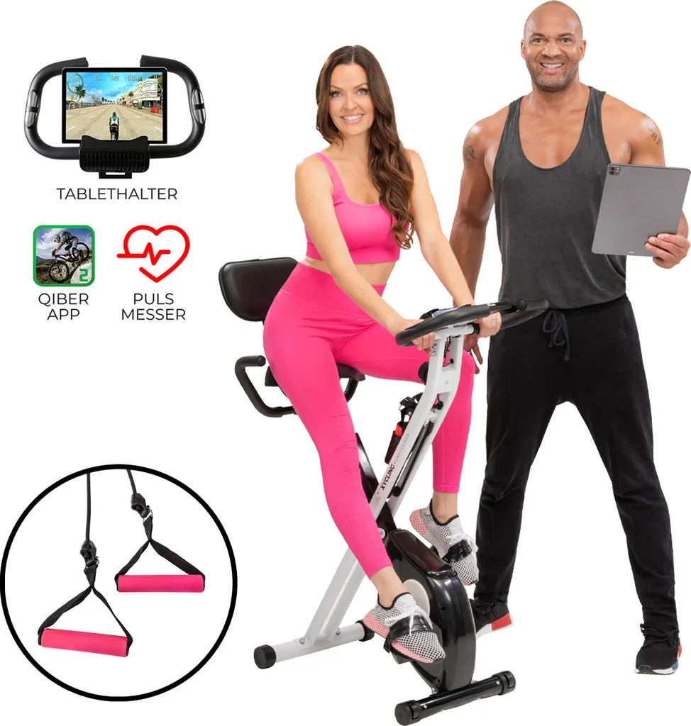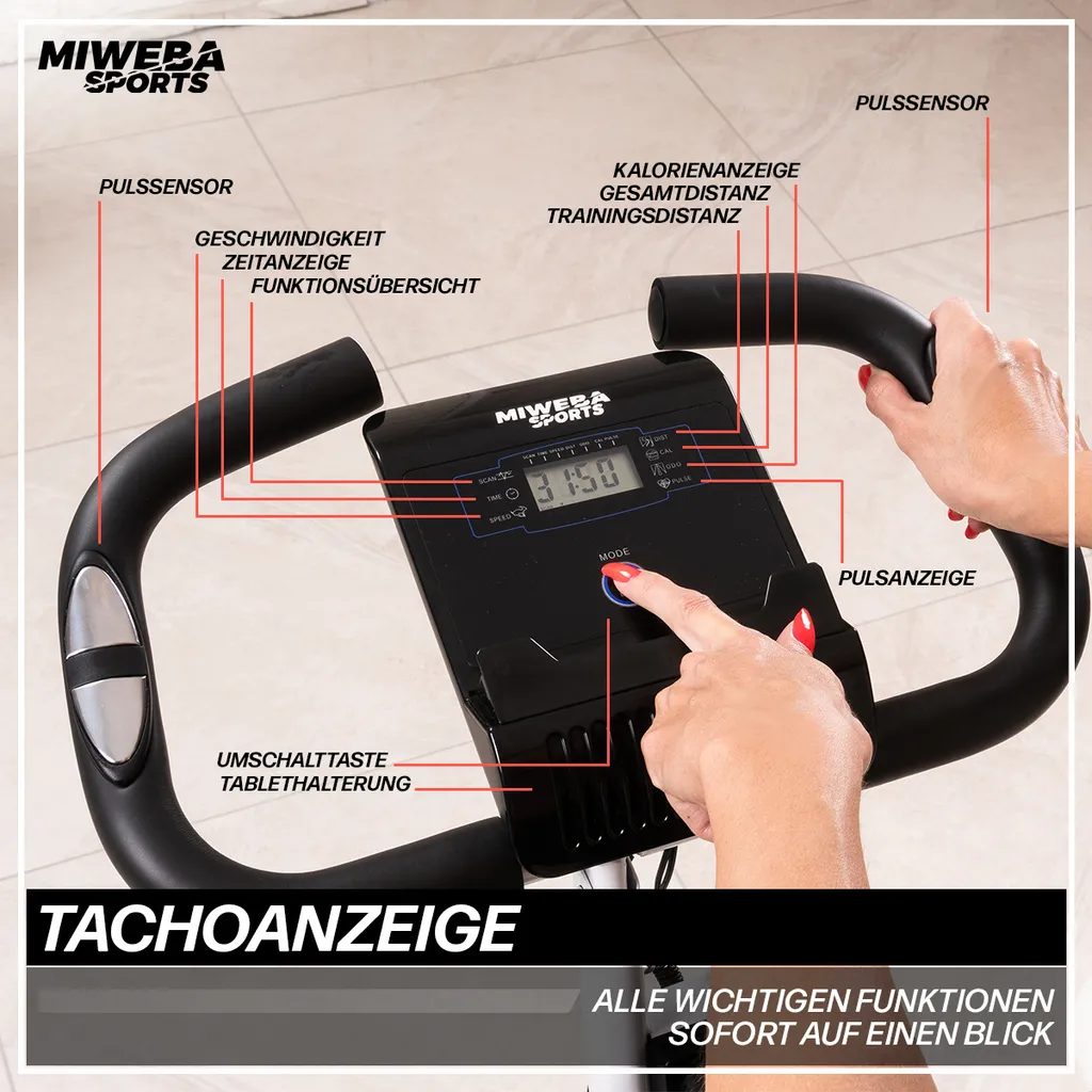 Miweba Sports Profi Heimtrainer MX100, X-Bike Klappbar Faltbar, App Steuerung, Tablethalterung, Zugbandsystem, Handpulssensoren, Komfortsitz, Cardio, Fitnessbike, Heimtrainer, Fahrrad (Schwarz/Weiß)