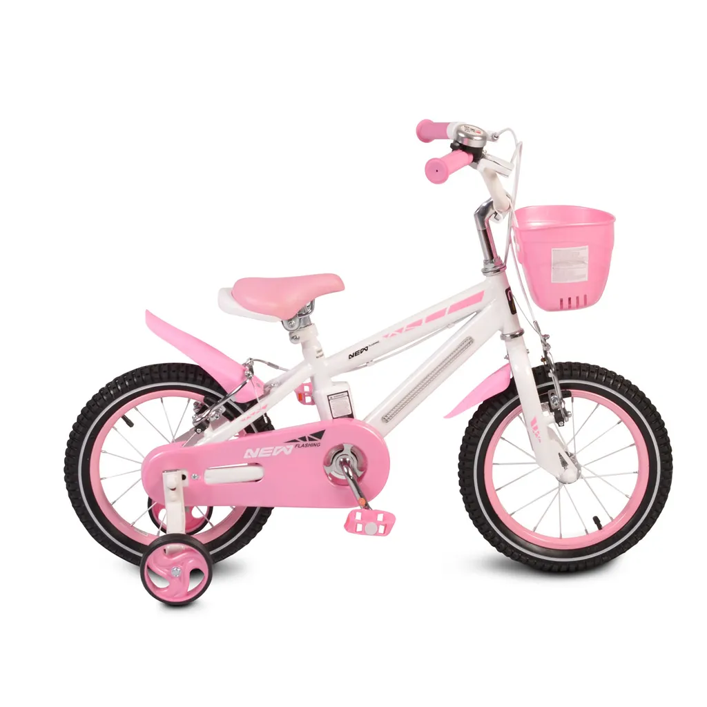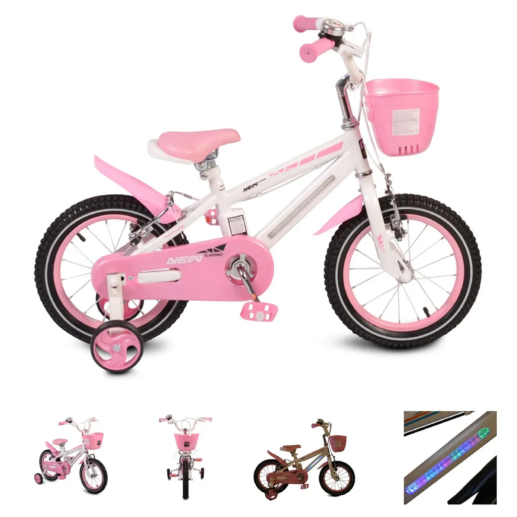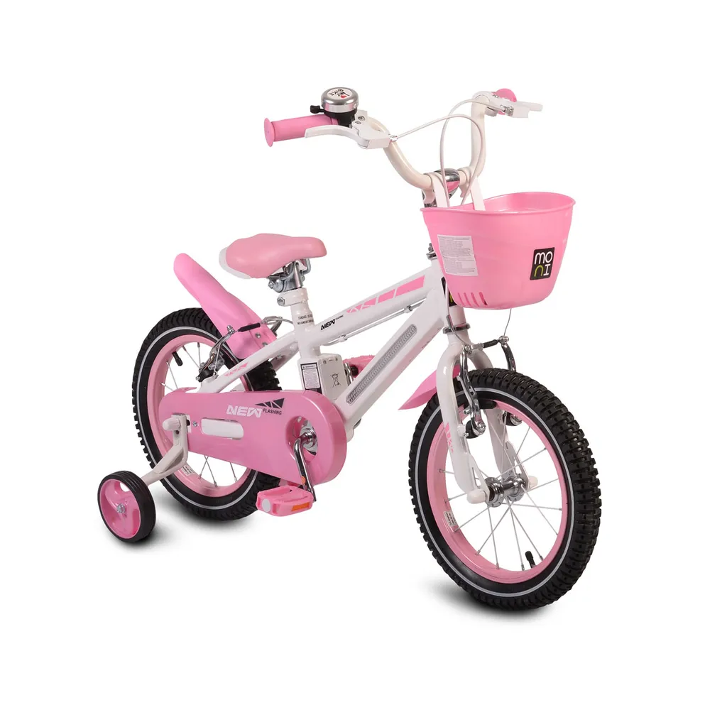 Moni Kinderfahrrad 14 Zoll 1490 Stützräder, Beleuchteter Metallrahmen, Klingel In Rosa