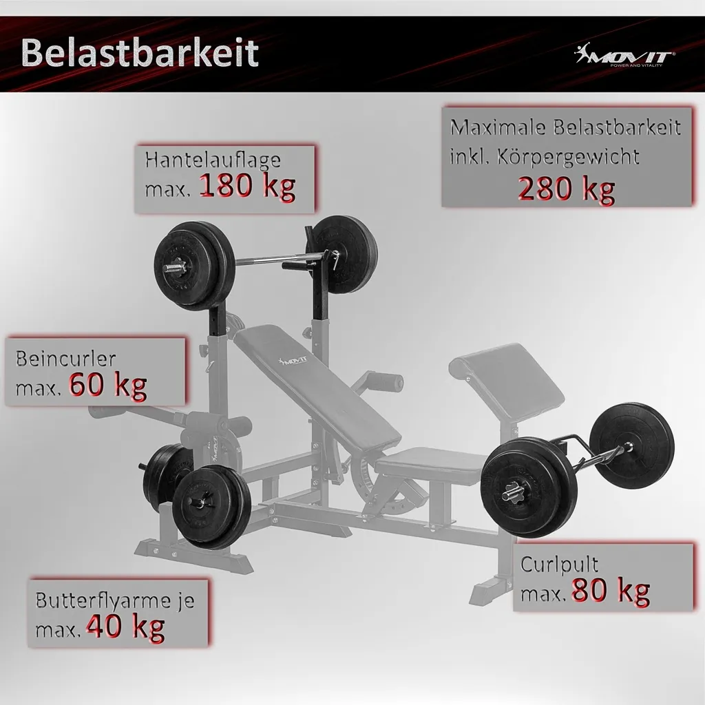 MOVIT Kraftstation PRO, Multifunktionsbank Homegym Hantelbank Heimtrainingsgerät