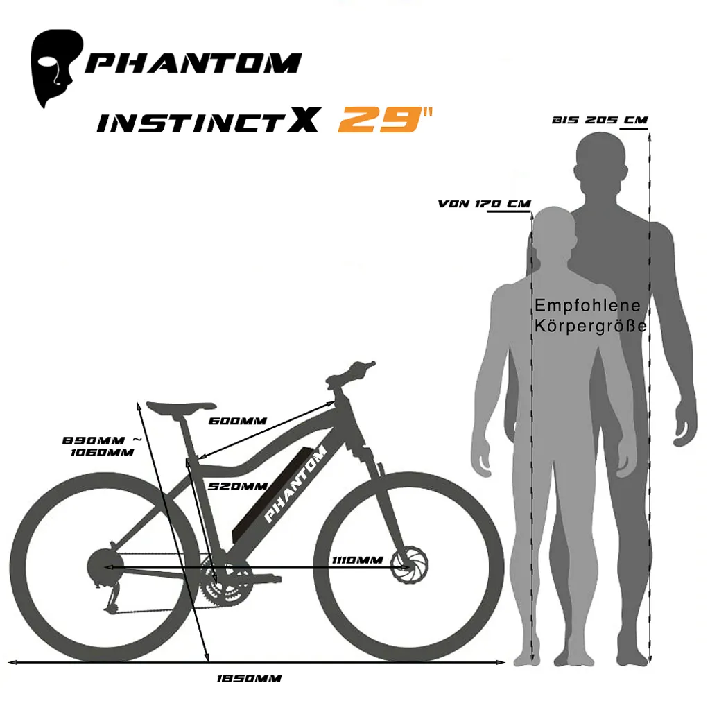 Phantom Instinct X | E-MTB | 29″ Zoll | 10.5Ah 380 Wh | Elektro Mountainbike Creme E Bike Mountain | 100 Km | 380 Wh 10.5 Ah | Shimano | Osram | Bluetooth