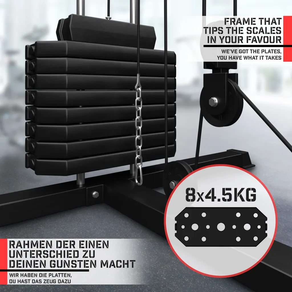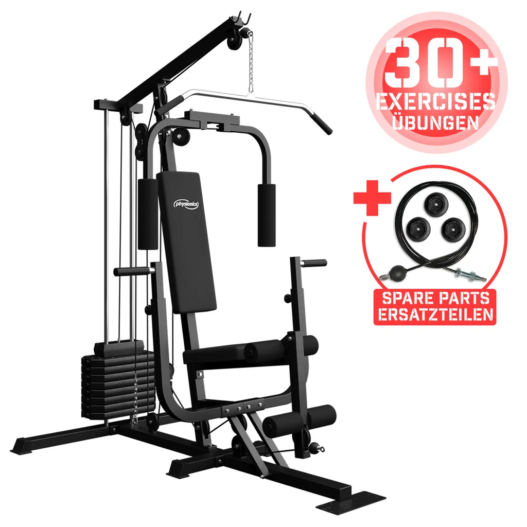 Physionics® Kraftstation – Verstellbar, Latzug, Butterfly, Beincurl, Armcurl, Rudern, Für Zuhause, 40kg Gewichte – Fitnessstation, Multistation, Trainingsstation, Homegym, Multigym, Krafttraining