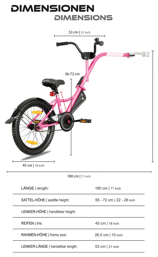 Prometheus Fahrradanhänger Kinder Trailerbike Fahrrad Tandemanhänger Nachläufer 18 Zoll Ab 5-10 Jahre Rosa Lila