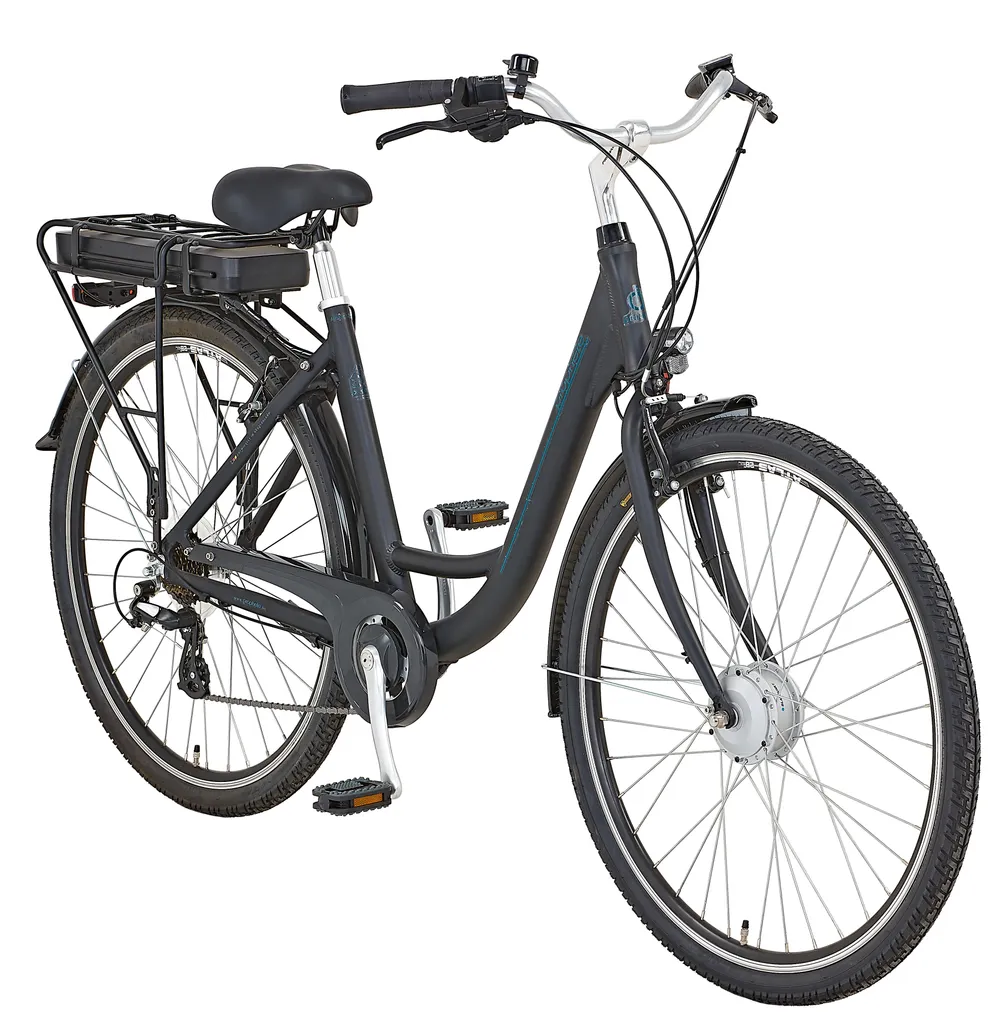 PROPHETE GENIESSER City E-Bike 28″ BLAUPUNKT Frontmotor 30 NM 250 Watt BLAUPUNKT Gepäckträgerakku 36 Volt 8,8 Ah 316,8 Wh 7 Gang Kettenschaltung Alu V-Bremsen RH 48 Cm BLAUPUNKT LED Display