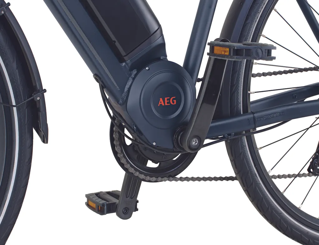 Prophete Herren E-Bike ENTDECKER 28″ AEG EcoDrive Mittelmotor NM 250 Watt AEG Downtubeakku 36 Volt 10,4 Ah 374 WH 8 Gang Kettenschaltung Scheibenbremsen RH 52 Cm AEG LCD Display