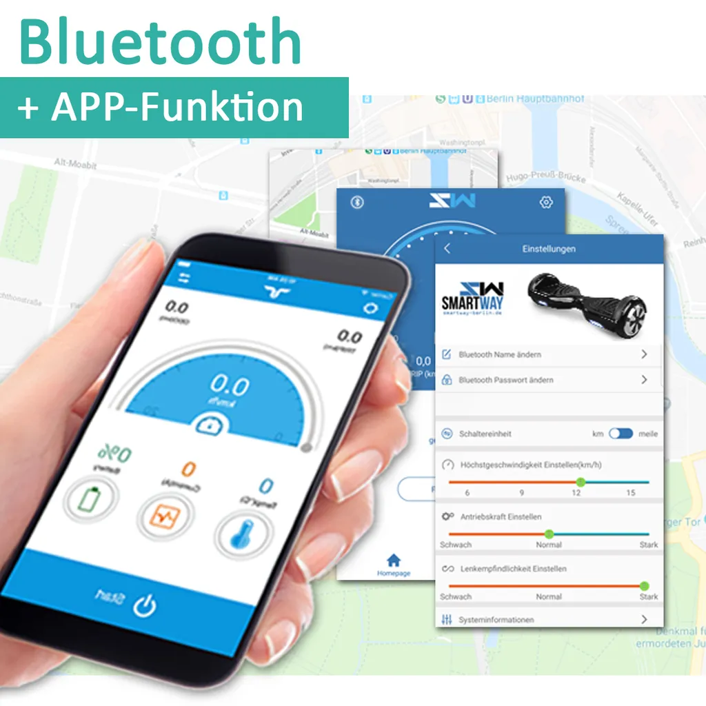 Smartway Hoverboard 6, 5 Zoll 600W-Motion V.5 Mit App Funktion, Bluetooth Lautsprecher, Kinder Sicherheitsmodus, Self Elektro Balance Scooter, 600 Watt – Wood Design