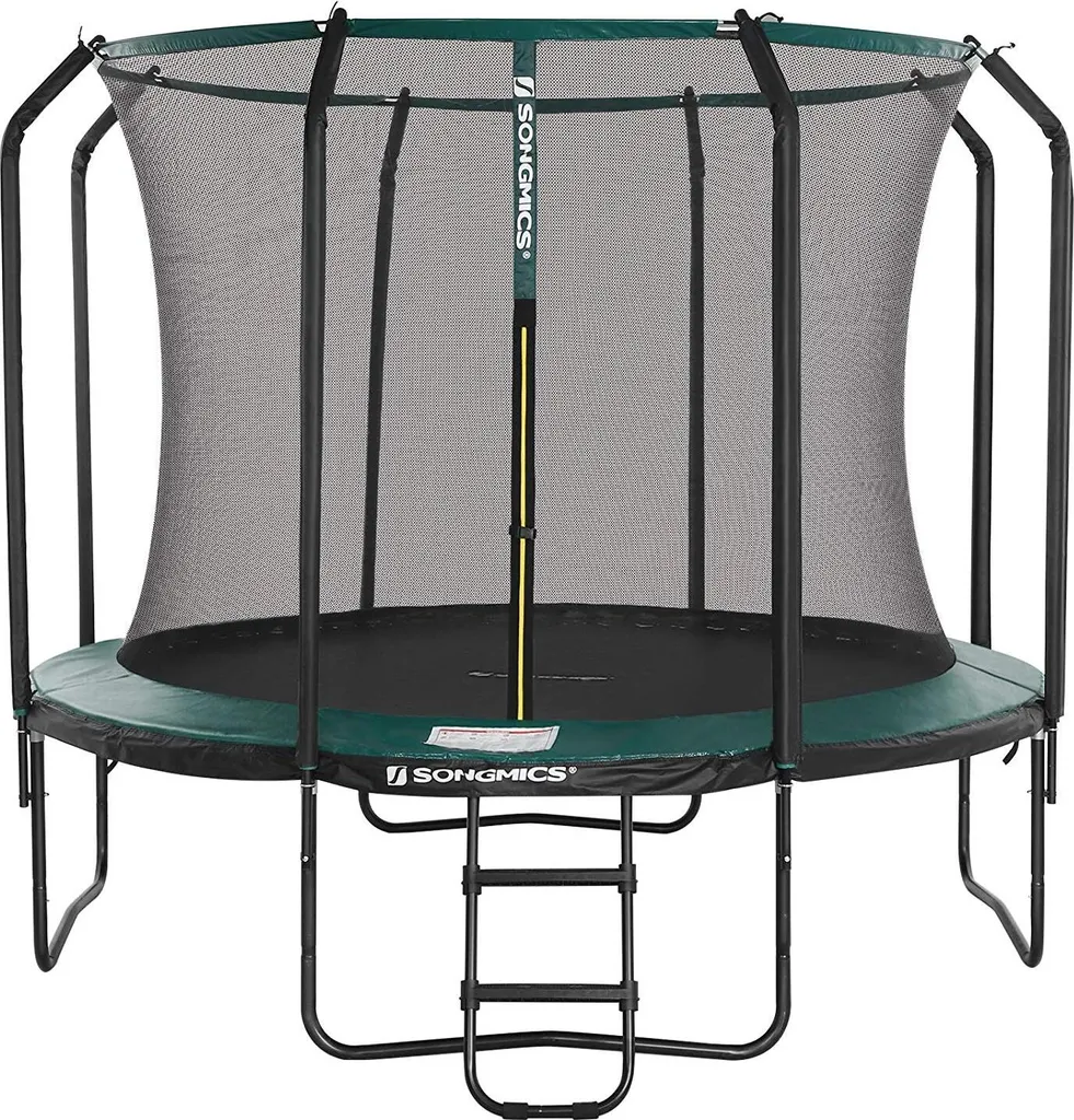 SONGMICS Trampolin Rundes Gartentrampolin Mit Sicherheitsnetz Und Leiter, Gepolstertes Gestell, Für Kinder Und Erwachsene