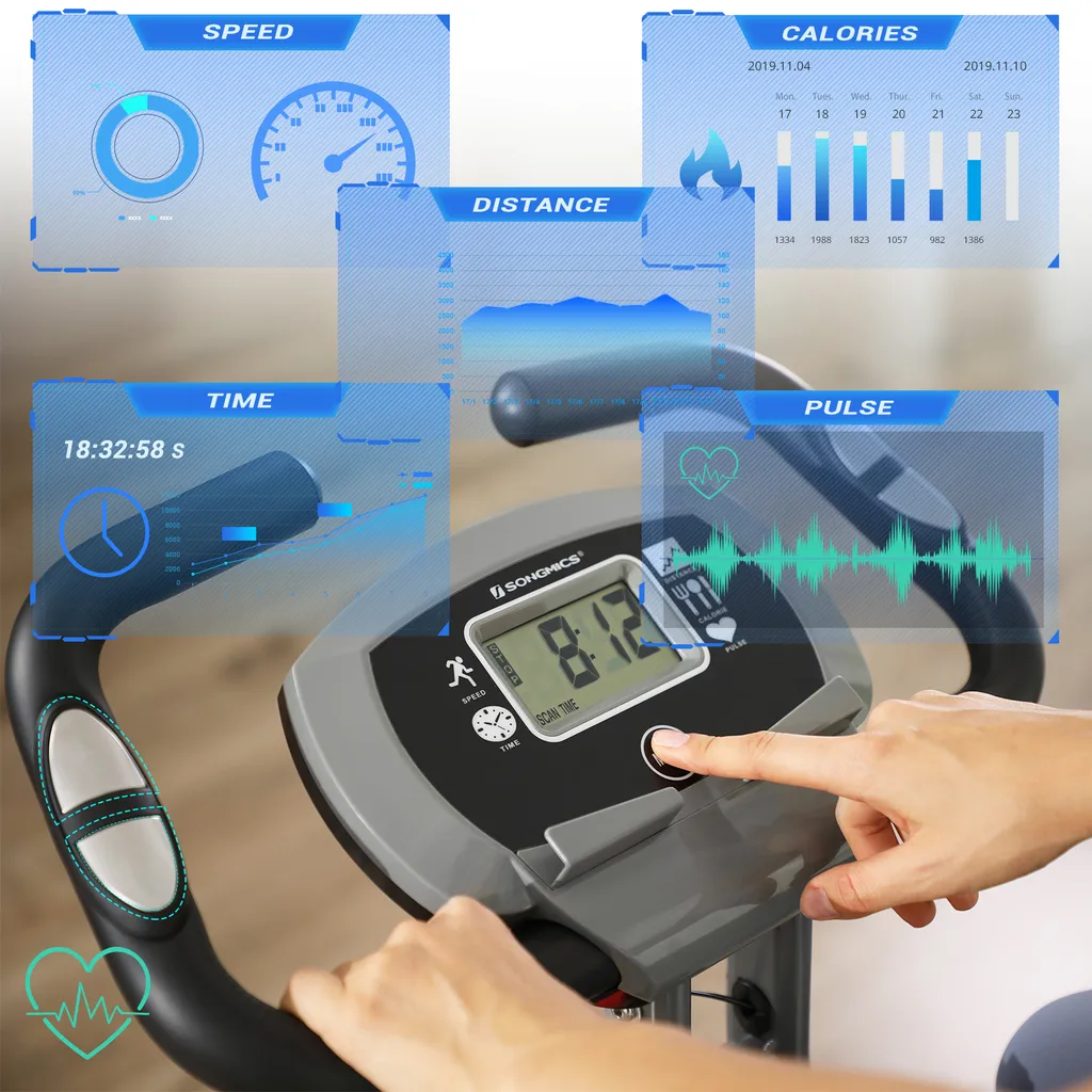 SONGMICS X Bike Heimtrainer Fitnessbike, Bis 100 Kg Fitnessfahrrad Mit Bodenmatte, 8 Magnetische Widerstandseinstellungen Zusammenklappbar Schwarz SXB11BK