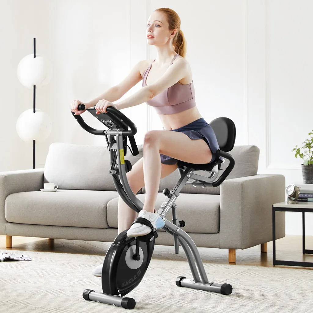 Sportana F-Bike Heimtrainer Eagle 3 Faltbar 10 Stufen 7 Sitzhöhen LCD Display Fitnessfahrrad 2 Zugbänder Fahrradtrainer Fitnessbike X-Bike