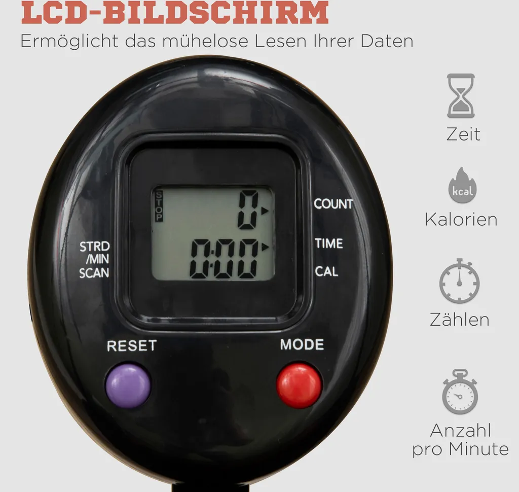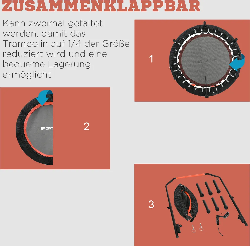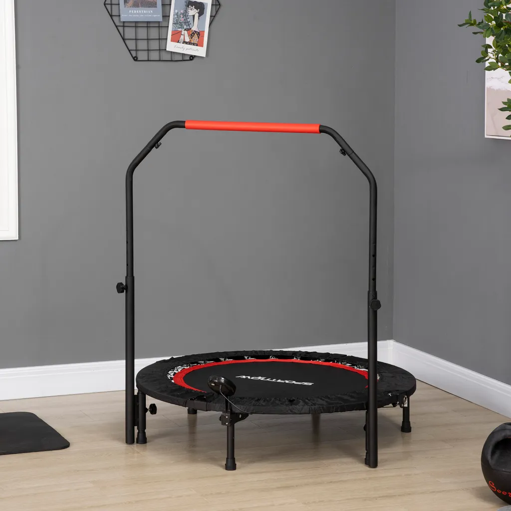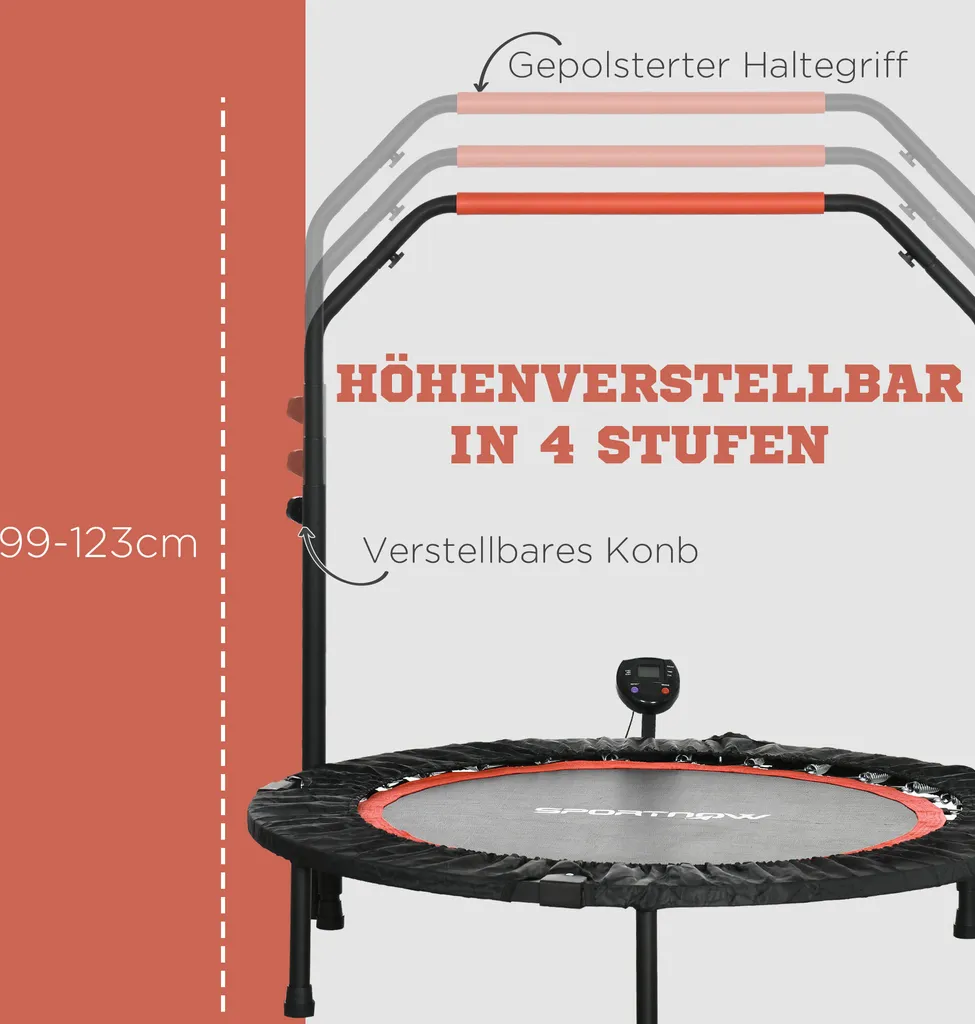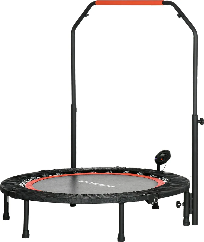 SPORTNOW 102 Cm Fitness-Trampolin, Faltbares Mini-Trampolin Mit 4-Fach Höhenverstellbarer Haltegriff, LCD-Monitor, Fitness-Rebounder Für Erwachsene, Kinder, Bis 100 Kg