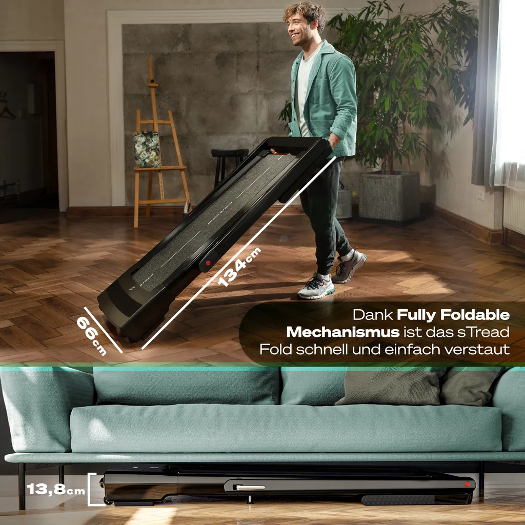 Sportstech 2in1 Laufband Klappbar Mit App + LED-Funktion | STread Fold Bis 12 Km/h & Walking Pad Mode Bis 6 Km/h | Fitnessgerät Für Zuhause + Büro | Treadmill Mit 360° Tablet Holder & 2 LCD-Displays