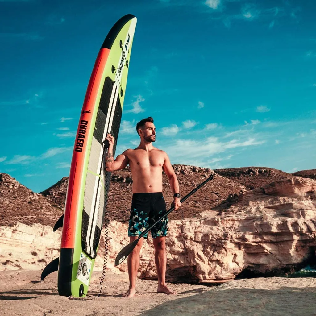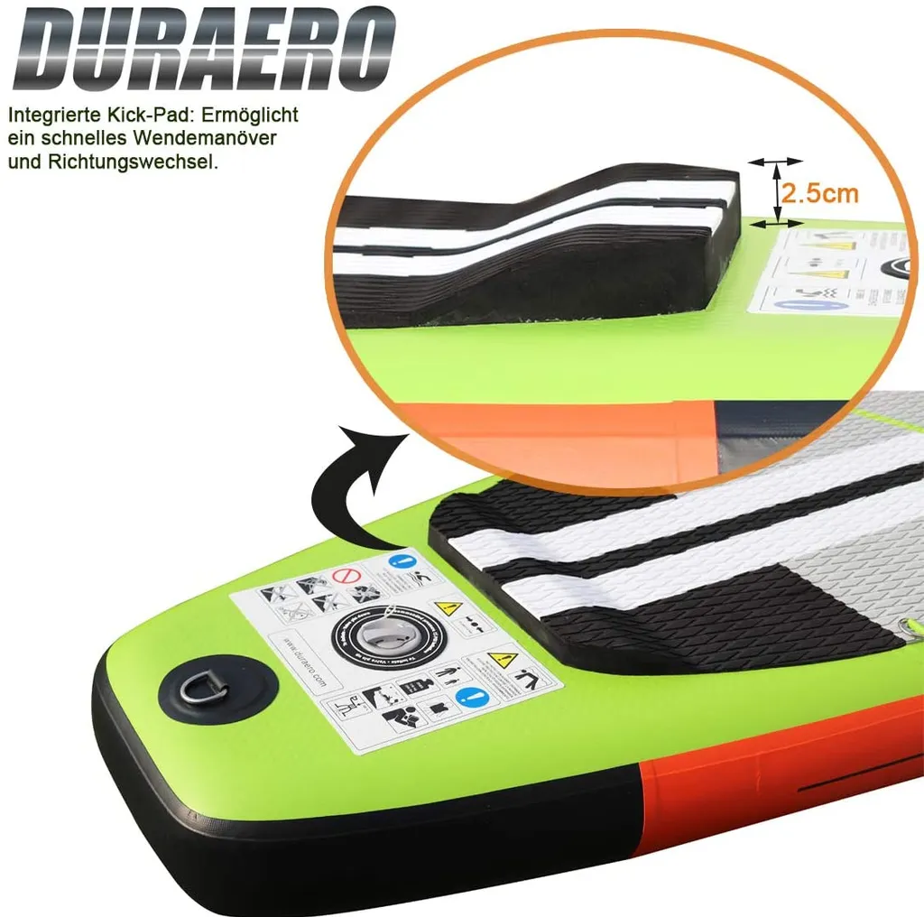 Stand Up Paddle Board SUP Board Set, 330x76x15cm, Bis 150kg, Kajak Sitz, Integrierte Kick-Pad, 3 Finnen, Verstellbares Doppel-Paddel, Komplettes Zubehör, Grün