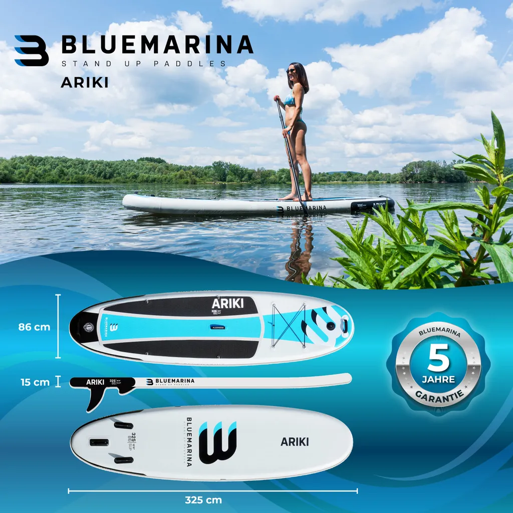 SUP Board ARIKI – Aufblasbar Mit Paddel Pumpe Rucksack – 3 Größen + Für Kinder (325x86x15cm / 10’8″)