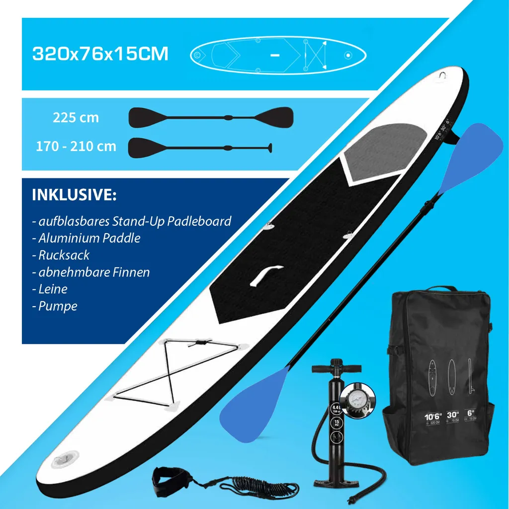 SUP XL Board Stand Up Paddling Surfboard Aufblasbar Doppel-Paddel SUP Blau 320cm