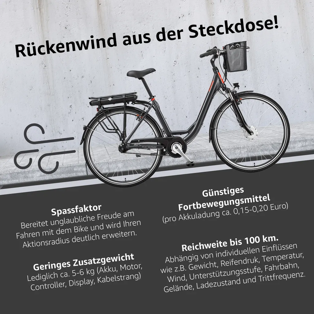 Telefunken E-Bike City 28 Zoll, Frontmotor, 7-Gang Shimano Nabenschaltung, Rücktritt, Fahrradkorb, Elektrofahrrad / Pedelec 468Wh, Multitalent RC657