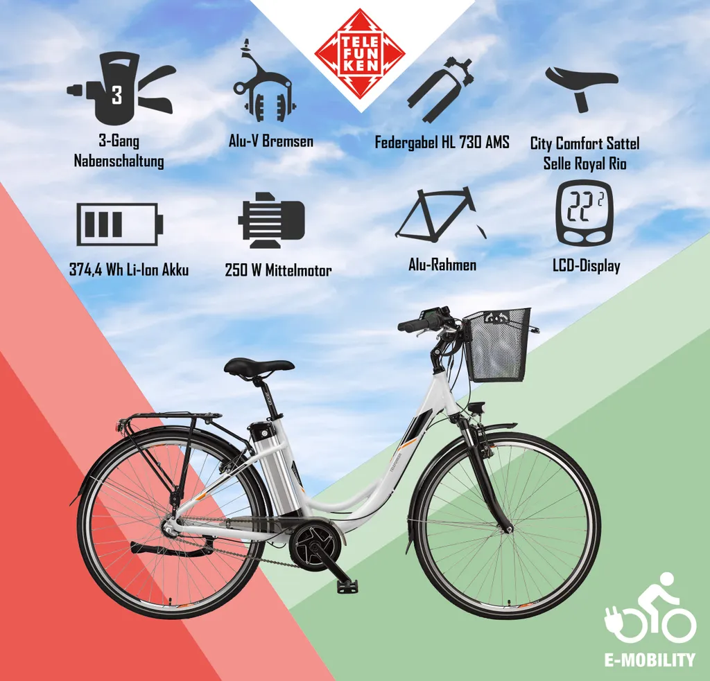 Telefunken E-Bike 28 Zoll Citybike Pedelec 7-Gang Shimano Nabenschaltung Schwalbe Reifen RC657-S
