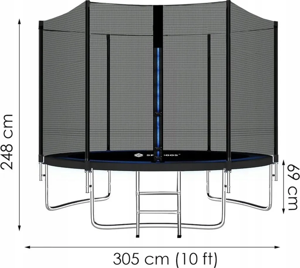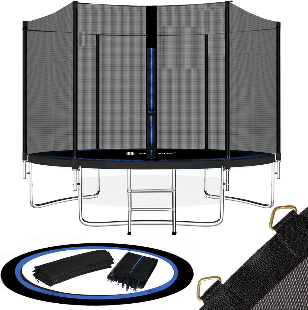 Trampolin Mit Sicherheitsnetz 305 Cm 6 Pfosten Sprungmatte Federabdeckung Trampolinleiter