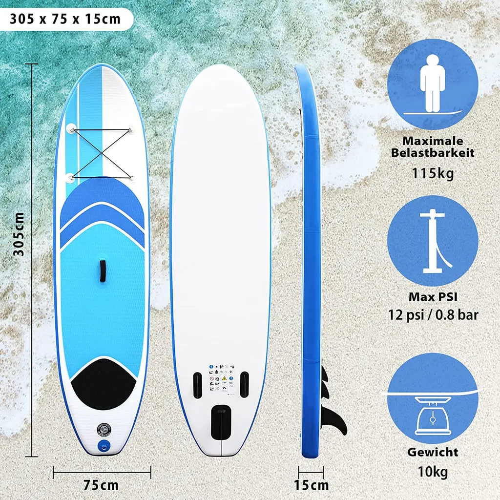 UISEBRT Stand Up Paddle Board Aufblasbare SUP Board Set Max Ladegewicht Bis Ca. 115 Kg ( 305x75x15cm )