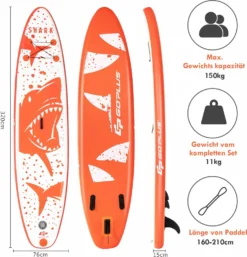 EASYmaxx Stand Up Paddle Board – Paddelboard Wellenreiter Aufblasbar – 320 X 76 X 15 Cm – Weiß/blau