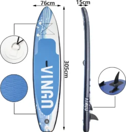 EASYmaxx Stand Up Paddle Board – Paddelboard Wellenreiter Aufblasbar – 320 X 76 X 15 Cm – Weiß/blau