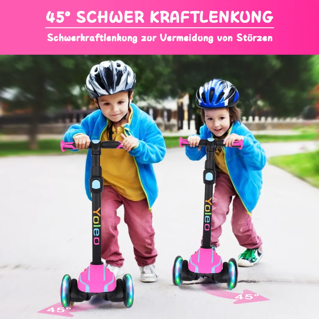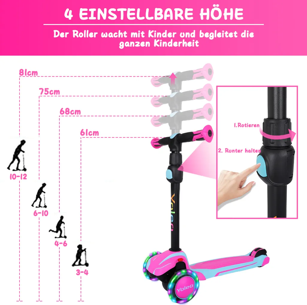 Yoleo Kinder Roller Ab 3 Jahre, Kinderscooter Mit LED Leuchtenden Räder, Dreiradscooter 4 Höhenverstellbare Für Jungen & Mädchen Im Alter Von 3-12 Jahren, Rosa