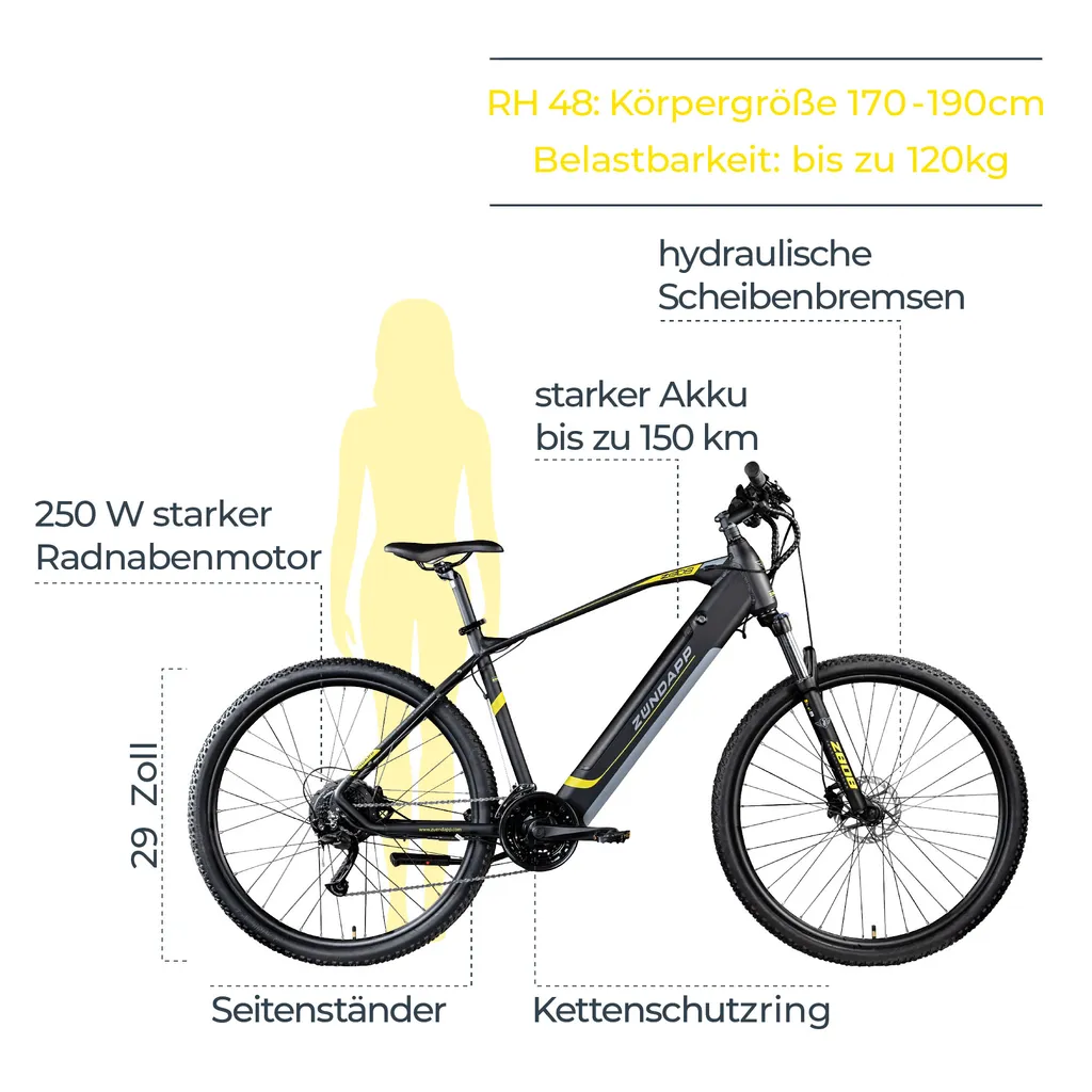 Zündapp Z808 E Bike Für Damen Und Herren Ab 170 Cm Mountainbike 29 Zoll E MTB Hardtail Pedelec Fahrrad Elektrofahrrad 27 Gänge Elektrobike