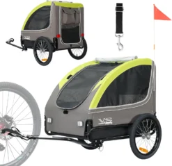 PawHut Hundeanhänger Fahrradanhänger Hundetransporter Hunde Fahrrad Anhänger Grau 130 X 73 X 90 Cm